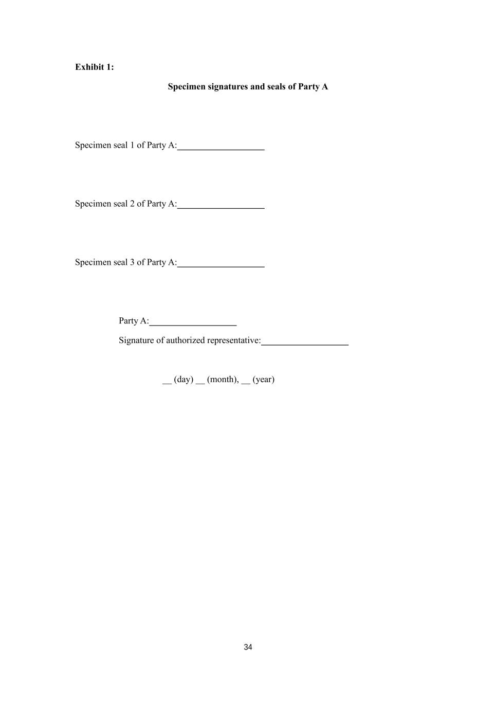 34 Exhibit 1: Specimen signatures and seals of Party A Specimen seal 1 of Party A: Specimen seal 2 of Party A: Specimen seal 3 of Party A: Party A: Signature of authorized representative: __ (day) __ (month), __ (year)