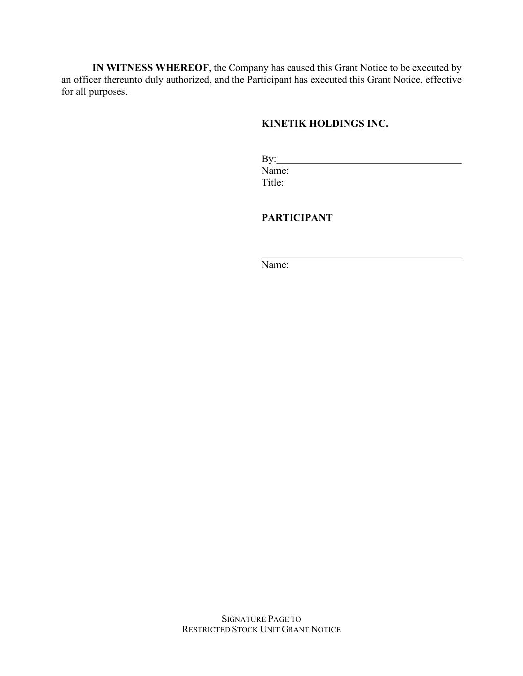 SIGNATURE PAGE TO RESTRICTED STOCK UNIT GRANT NOTICE IN WITNESS WHEREOF, the Company has caused this Grant Notice to be executed by an officer thereunto duly authorized, and the Participant has executed this Grant Notice, effective for all purposes. KINETIK HOLDINGS INC. By: Name: Title: PARTICIPANT Name: