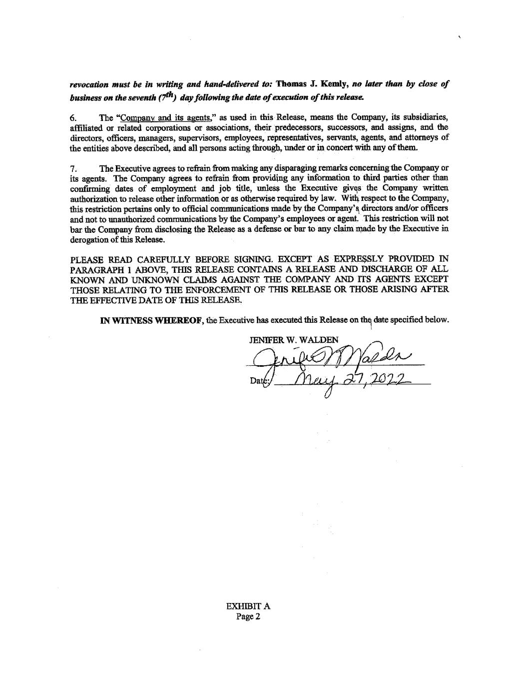 EX-10.1 2 jwaldencontract2022.htm EX-10.1 jwaldencontract2022