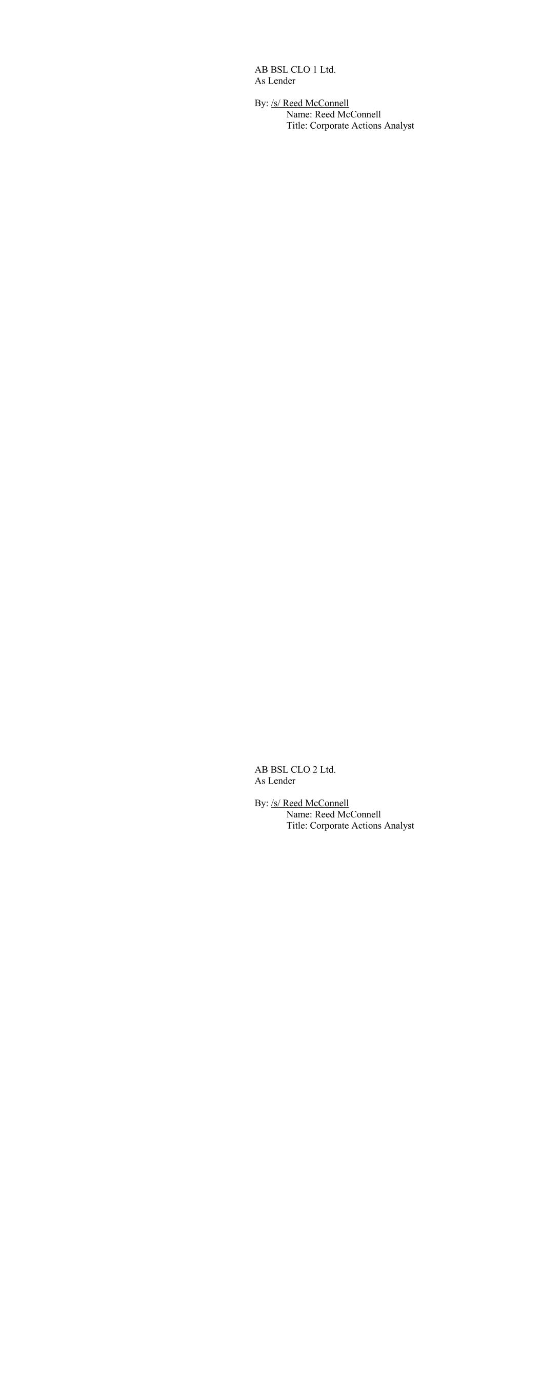 AB BSL CLO 1 Ltd. As Lender By: /s/ Reed McConnell Name: Reed McConnell Title: Corporate Actions Analyst AB BSL CLO 2 Ltd. As Lender By: /s/ Reed McConnell Name: Reed McConnell Title: Corporate Actions Analyst