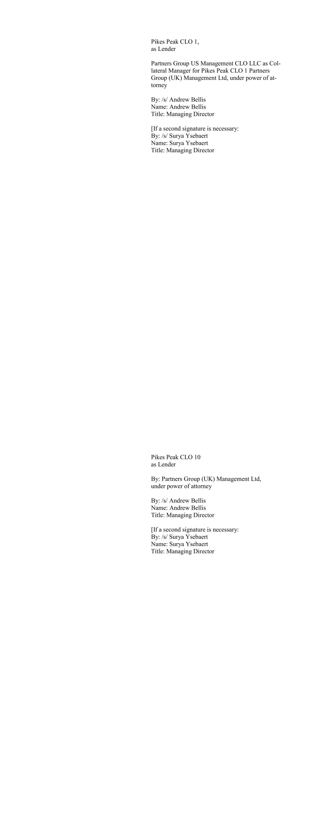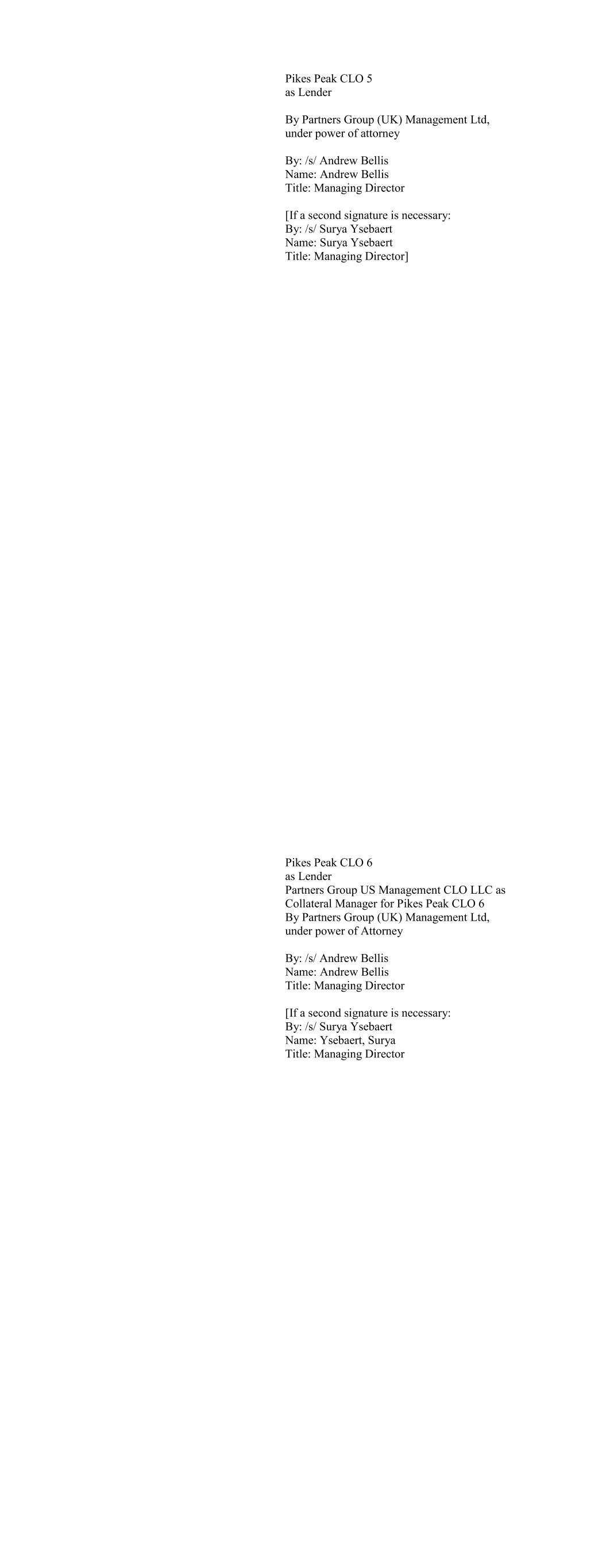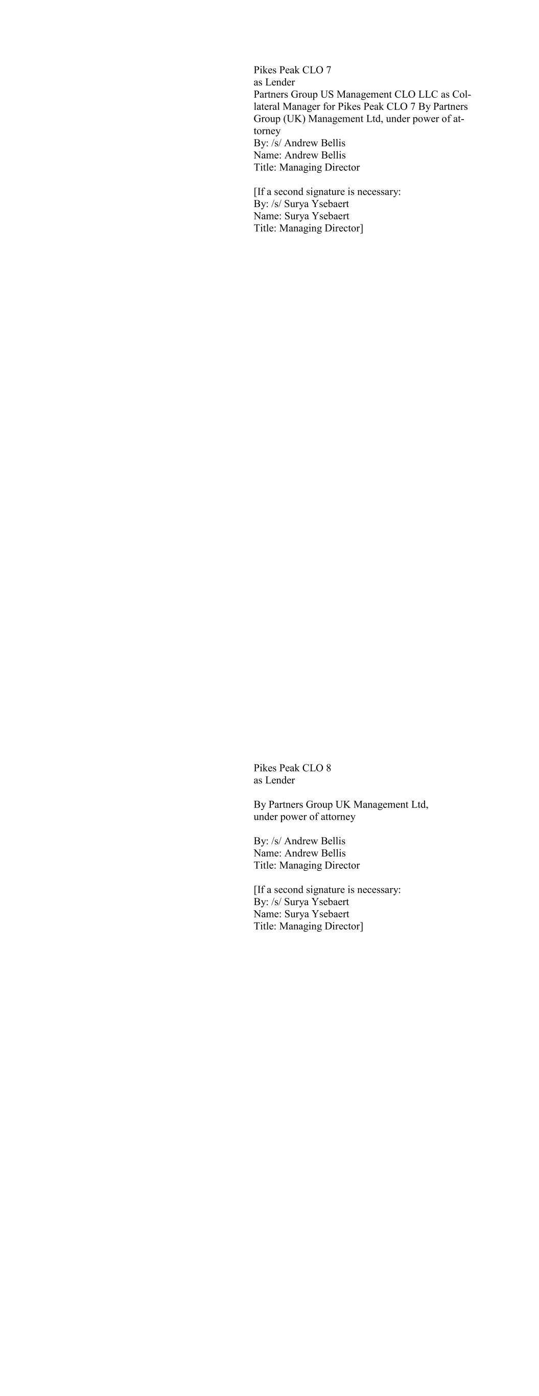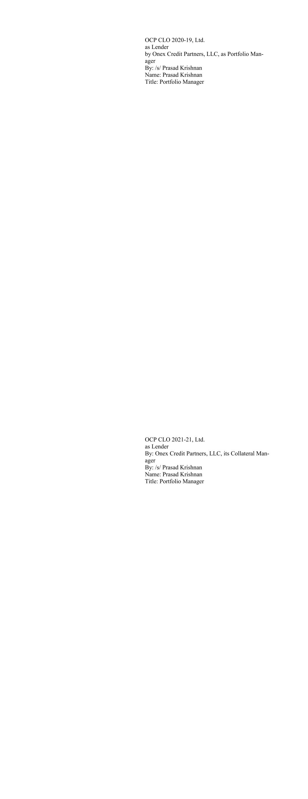 Apex Credit CLO 2020 Ltd., as Lender By: Apex Credit Partners, its Asset Manager By: /s/ Morris Cohen Name: Morris Cohen Title: Managing Director Apex Credit CLO 2021 Ltd. as Lender By: Apex Credit Partners LLC, as Portfolio Manager By: /s/ Morris Cohen Name: Morris Cohen Title: Managing Director