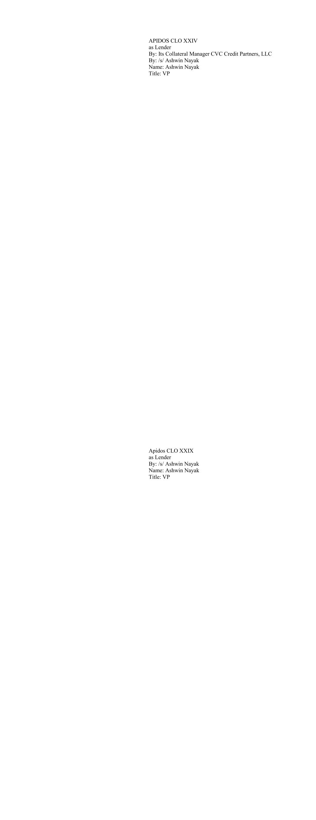 APIDOS CLO XXIV as Lender By: Its Collateral Manager CVC Credit Partners, LLC By: /s/ Ashwin Nayak Name: Ashwin Nayak Title: VP Apidos CLO XXIX as Lender By: /s/ Ashwin Nayak Name: Ashwin Nayak Title: VP