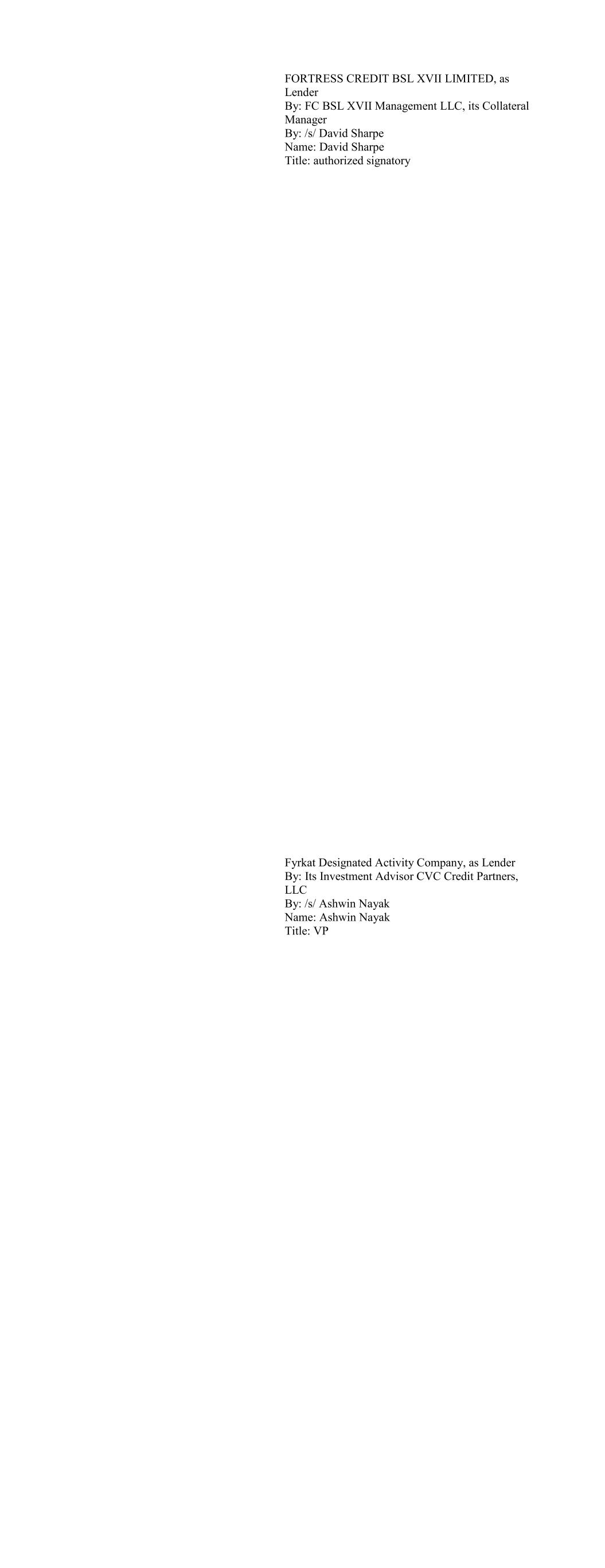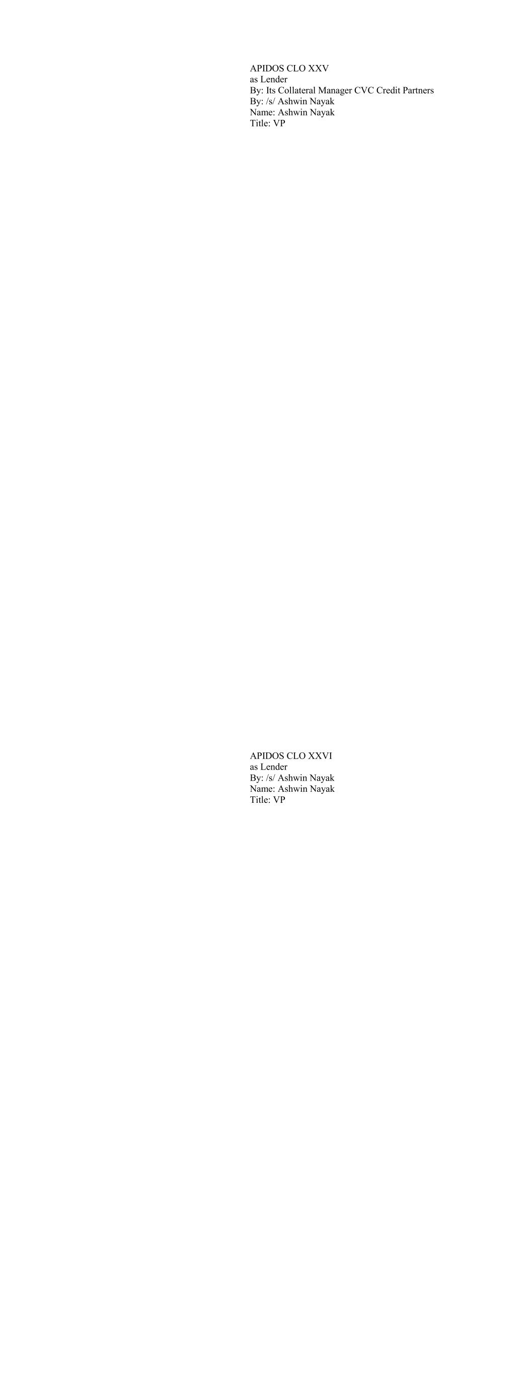 Apidos CLO XXX as Lender By: Its Collateral Manager CVC CREDIT PARTNERS U.S. CLO MANAGEMENT LLC By: /s/ Ashwin Nayak Name: Ashwin Nayak Title: VP Apidos CLO XXXI as Lender By: Its Collateral Manager CVC CREDIT PARTNERS U.S. CLO MANAGEMENT LLC By: /s/ Ashwin Nayak Name: Ashwin Nayak Title: VP