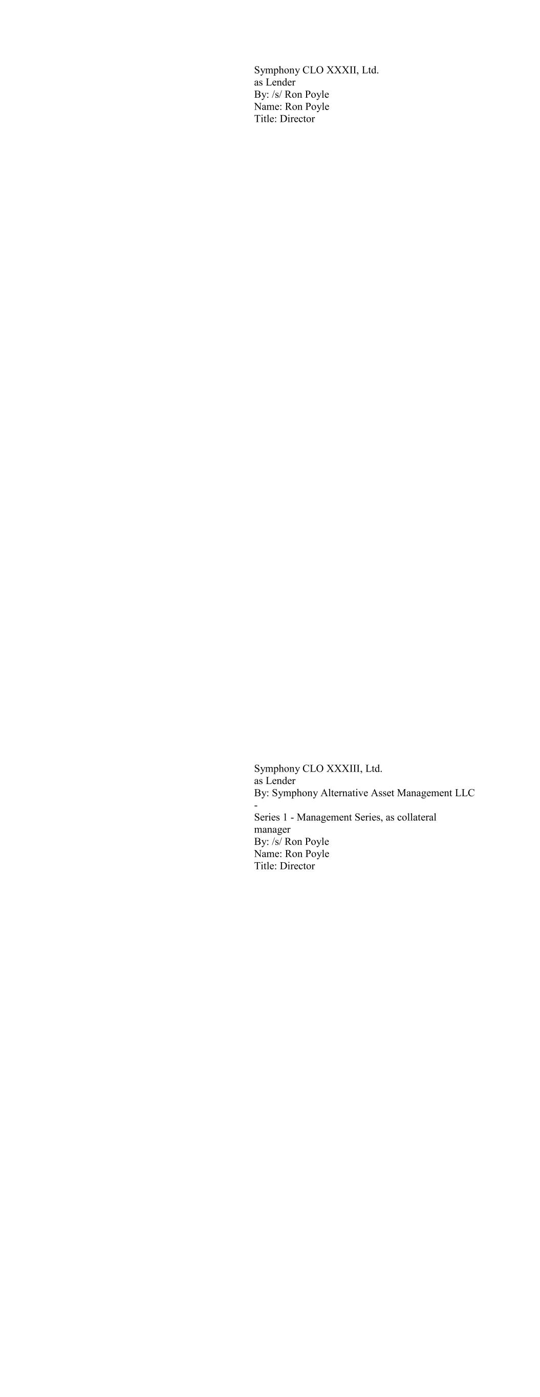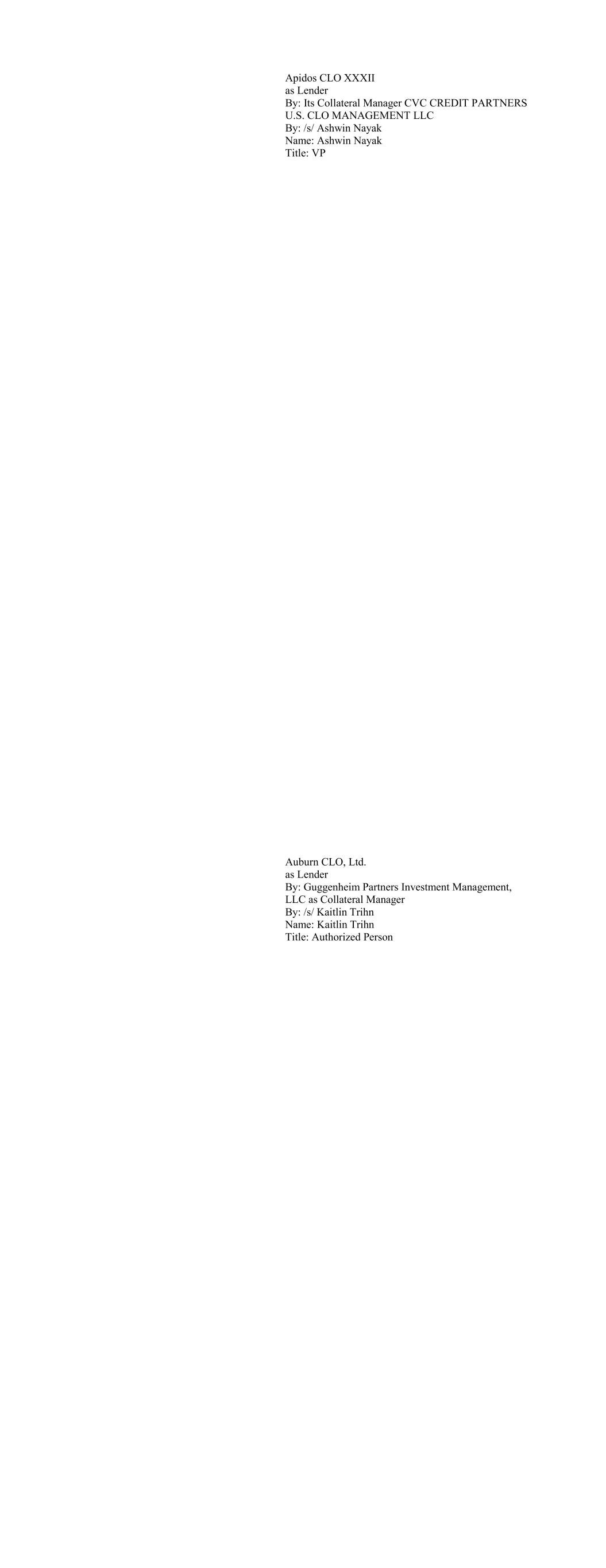 Apidos CLO XXXII as Lender By: Its Collateral Manager CVC CREDIT PARTNERS U.S. CLO MANAGEMENT LLC By: /s/ Ashwin Nayak Name: Ashwin Nayak Title: VP Auburn CLO, Ltd. as Lender By: Guggenheim Partners Investment Management, LLC as Collateral Manager By: /s/ Kaitlin Trihn Name: Kaitlin Trihn Title: Authorized Person