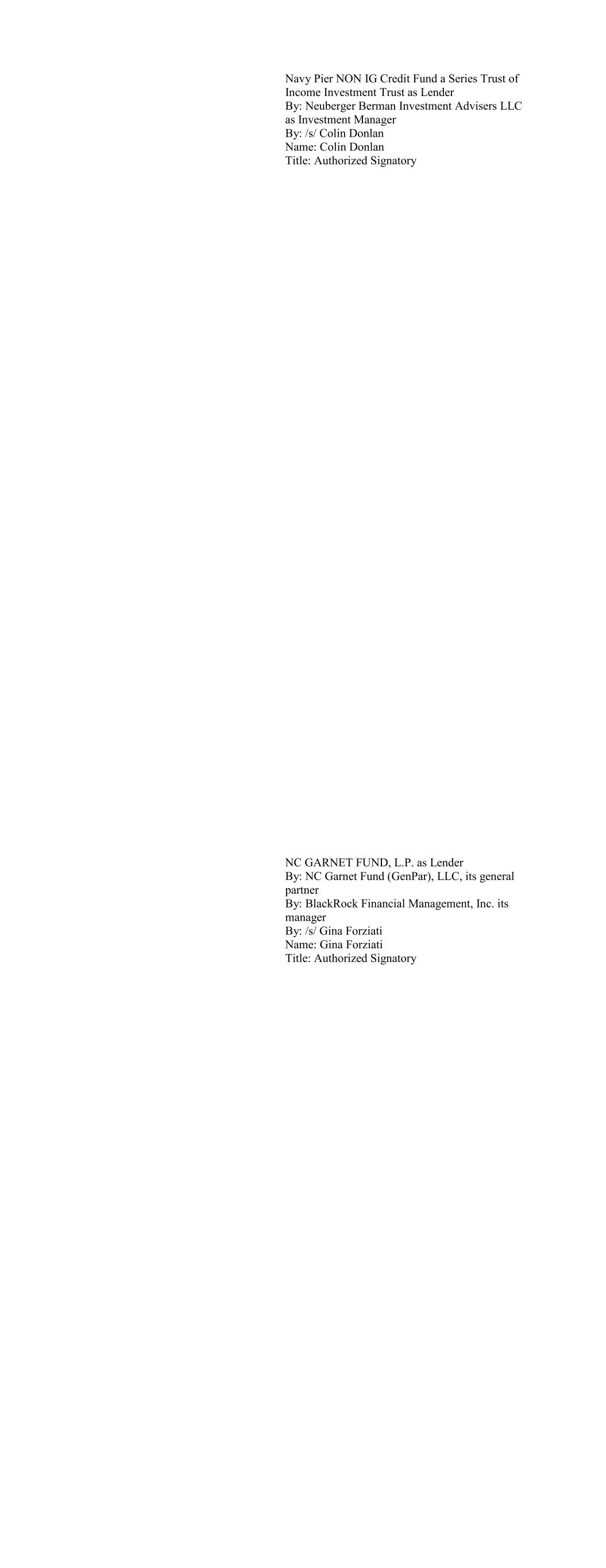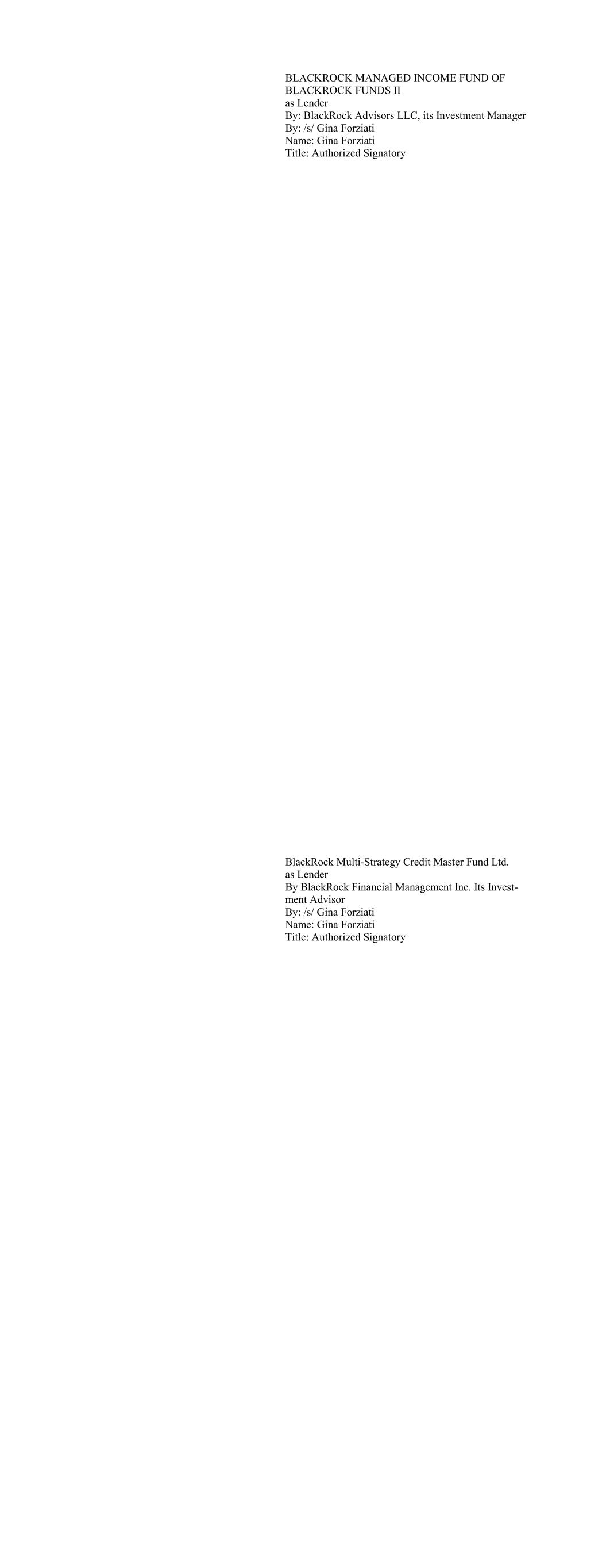 BLACKROCK MANAGED INCOME FUND OF BLACKROCK FUNDS II as Lender By: BlackRock Advisors LLC, its Investment Manager By: /s/ Gina Forziati Name: Gina Forziati Title: Authorized Signatory BlackRock Multi-Strategy Credit Master Fund Ltd. as Lender By BlackRock Financial Management Inc. Its Invest- ment Advisor By: /s/ Gina Forziati Name: Gina Forziati Title: Authorized Signatory