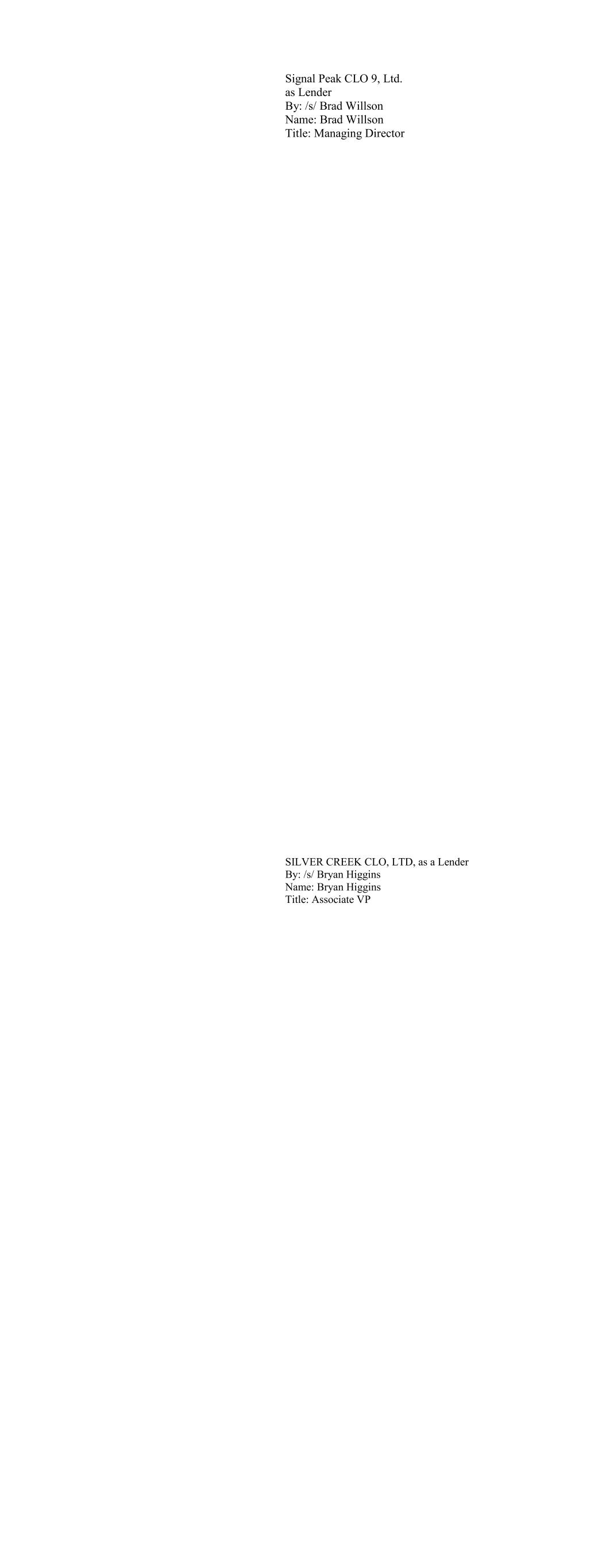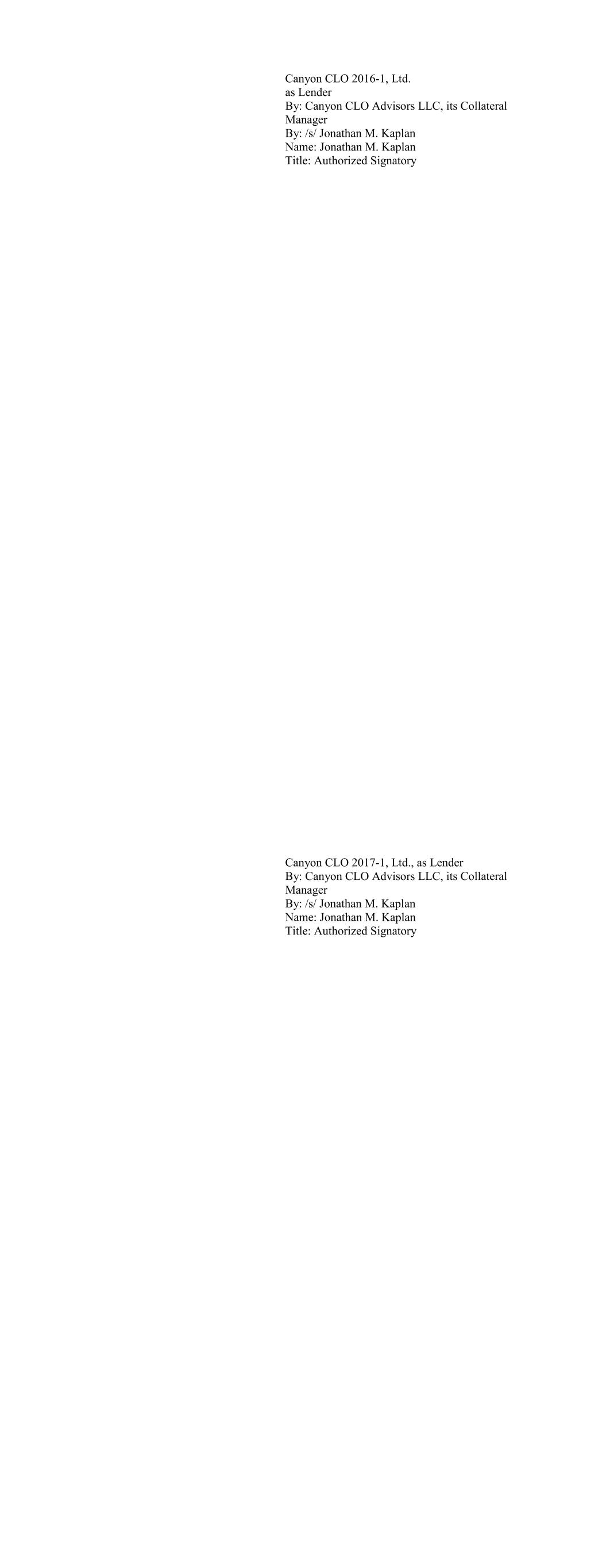Canyon CLO 2016-1, Ltd. as Lender By: Canyon CLO Advisors LLC, its Collateral Manager By: /s/ Jonathan M. Kaplan Name: Jonathan M. Kaplan Title: Authorized Signatory Canyon CLO 2017-1, Ltd., as Lender By: Canyon CLO Advisors LLC, its Collateral Manager By: /s/ Jonathan M. Kaplan Name: Jonathan M. Kaplan Title: Authorized Signatory