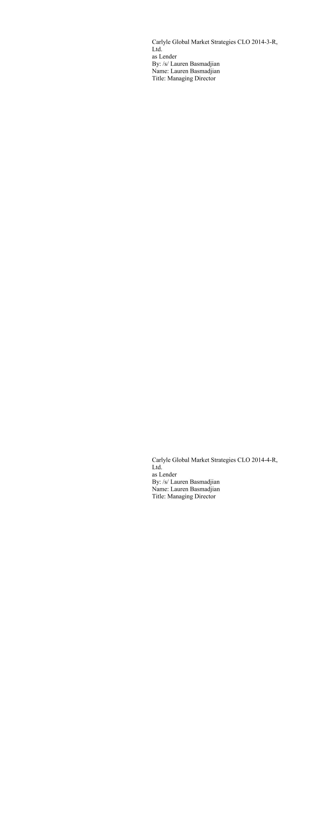 Carlyle Global Market Strategies CLO 2014-3-R, Ltd. as Lender By: /s/ Lauren Basmadjian Name: Lauren Basmadjian Title: Managing Director Carlyle Global Market Strategies CLO 2014-4-R, Ltd. as Lender By: /s/ Lauren Basmadjian Name: Lauren Basmadjian Title: Managing Director