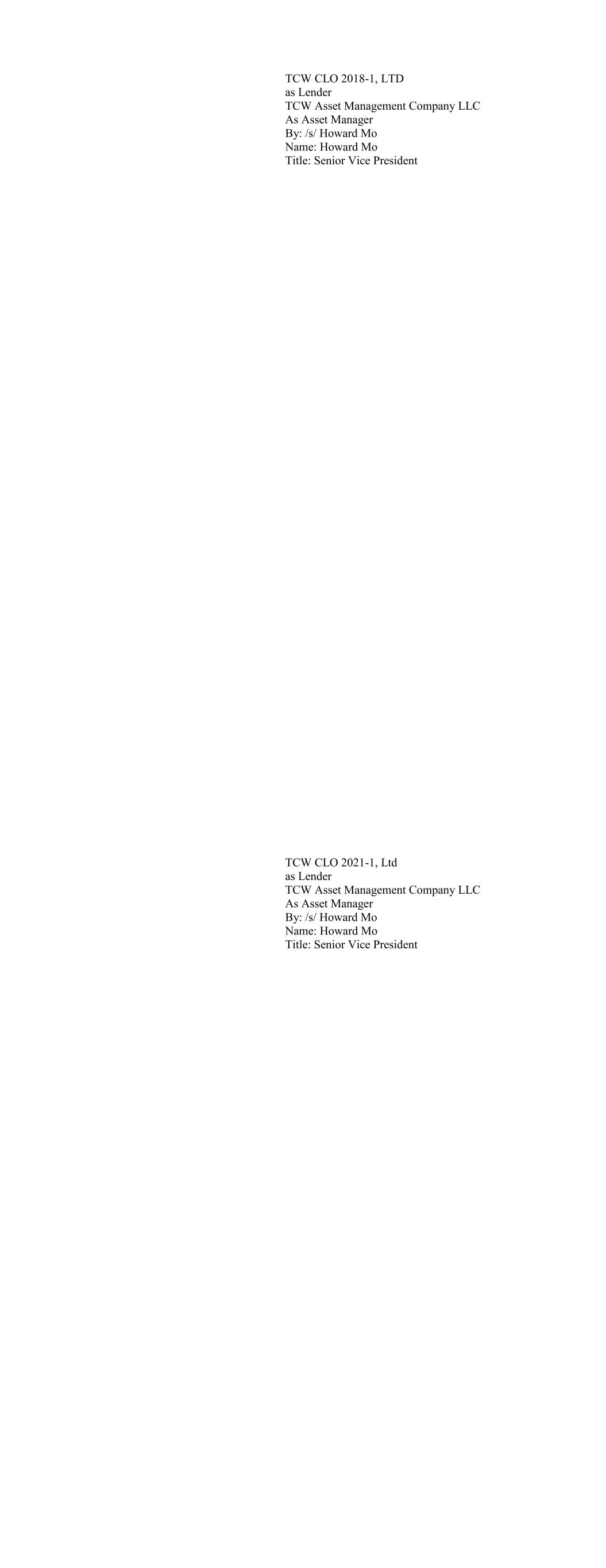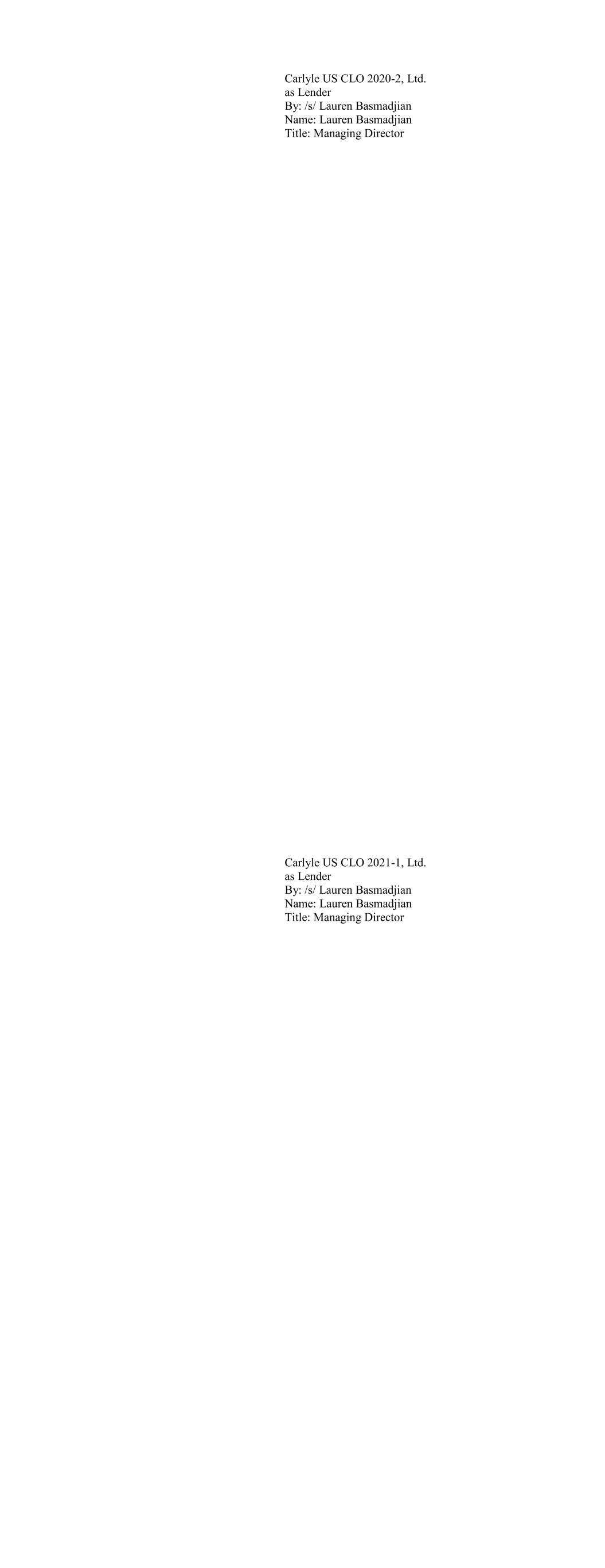 Carlyle US CLO 2020-2, Ltd. as Lender By: /s/ Lauren Basmadjian Name: Lauren Basmadjian Title: Managing Director Carlyle US CLO 2021-1, Ltd. as Lender By: /s/ Lauren Basmadjian Name: Lauren Basmadjian Title: Managing Director