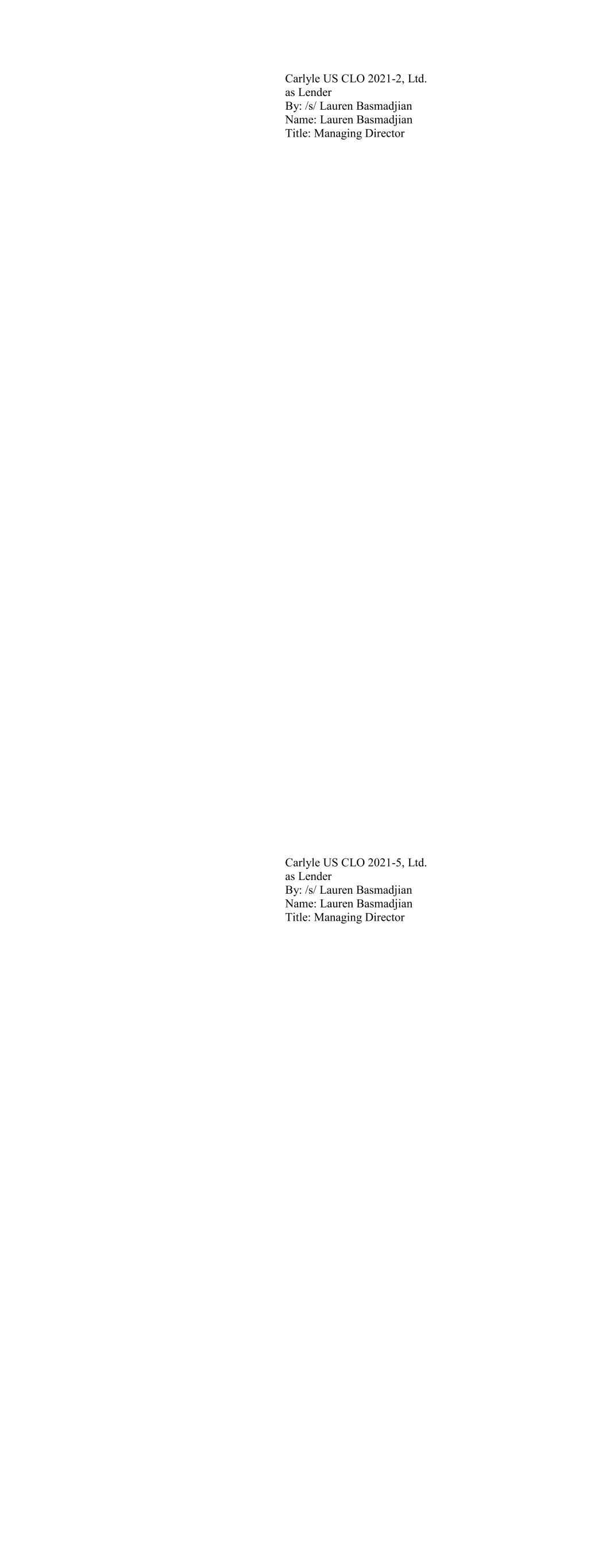 Carlyle US CLO 2021-2, Ltd. as Lender By: /s/ Lauren Basmadjian Name: Lauren Basmadjian Title: Managing Director Carlyle US CLO 2021-5, Ltd. as Lender By: /s/ Lauren Basmadjian Name: Lauren Basmadjian Title: Managing Director