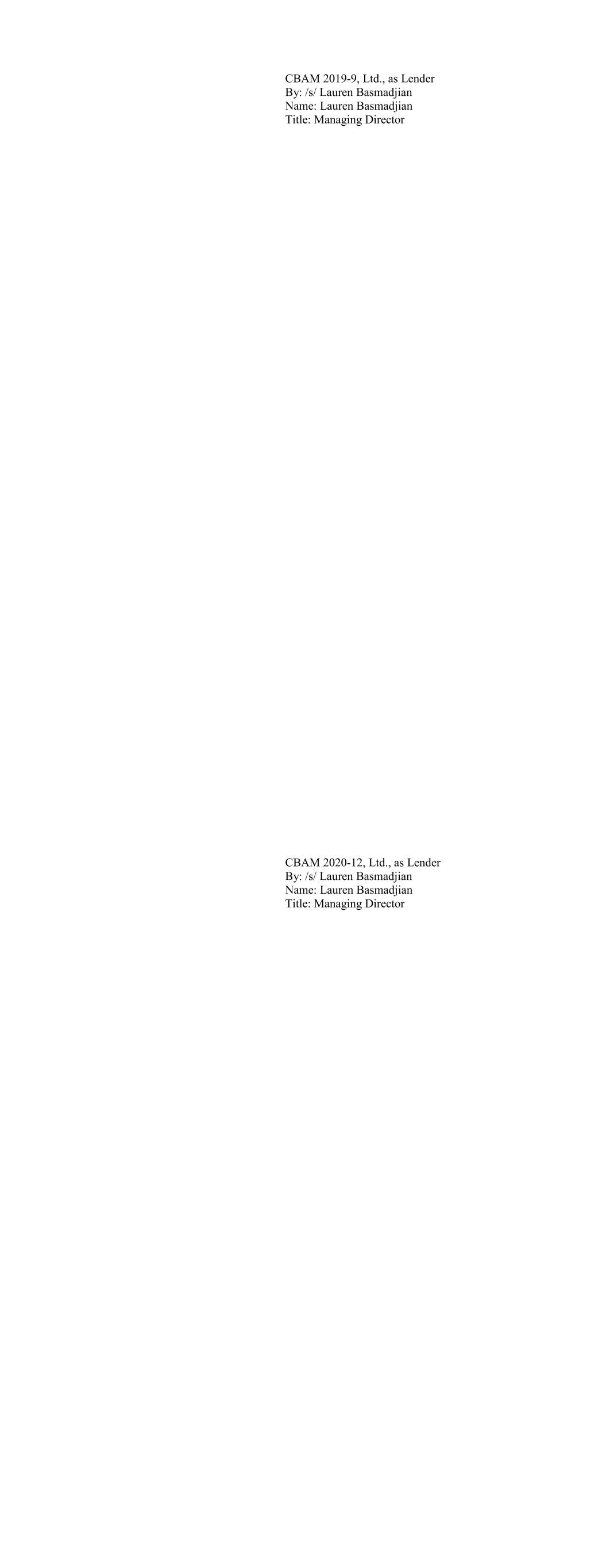 CBAM 2019-9, Ltd., as Lender By: /s/ Lauren Basmadjian Name: Lauren Basmadjian Title: Managing Director CBAM 2020-12, Ltd., as Lender By: /s/ Lauren Basmadjian Name: Lauren Basmadjian Title: Managing Director