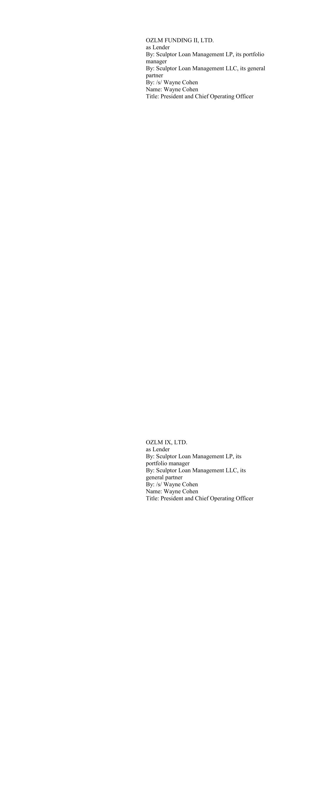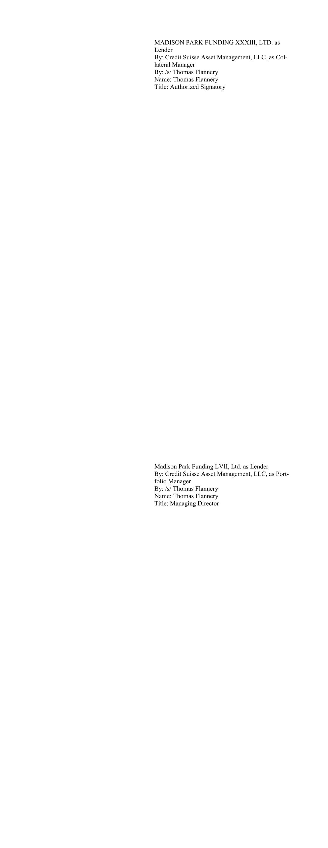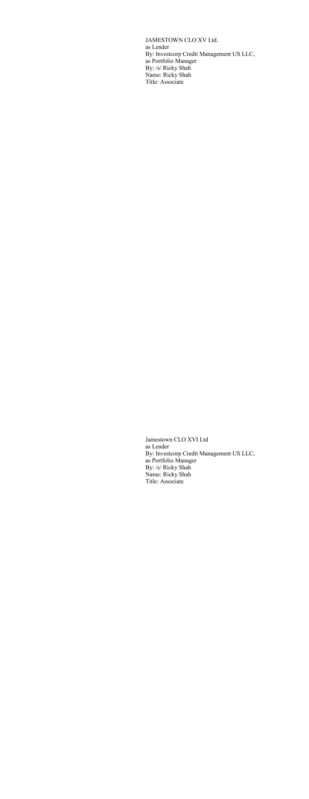 CIFC Funding 2017-I, Ltd., as Lender By: CIFC CLO Management II LLC, its Collateral Manager, by and on behalf of each of its series, Se- ries M-1, Series O-1 and Series RBy: By: /s/ Michael Nespola Name: Michael Nespola Title: Managing Director, Portfolio Manager CIFC Funding 2017-II, Ltd., as Lender By: CIFC CLO Management LLC, its Collateral Manager, by and on behalf of each of its series, Se- ries M-1, Series O-1 and Series R-1 By: /s/ Michael Nespola Name: Michael Nespola Title: Managing Director, Portfolio Manager