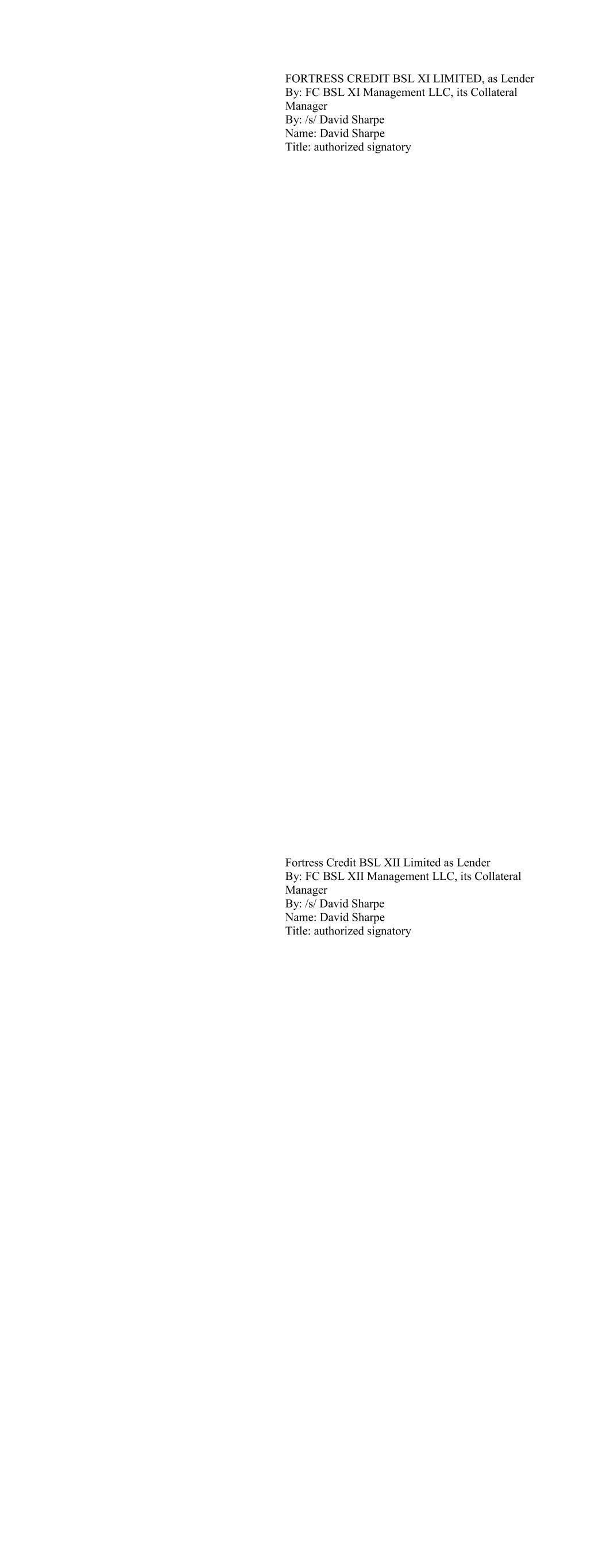 AB BSL CLO 3 Ltd. As Lender By: /s/ Reed McConnell Name: Reed McConnell Title: Corporate Actions Analyst ABR Reinsurance LTD. As Lender By: BlackRock Financial Management, Inc., its Invest- ment Manager By: /s/ Gina Forziati Name: Fina Forziati Title: Authorized Signatory