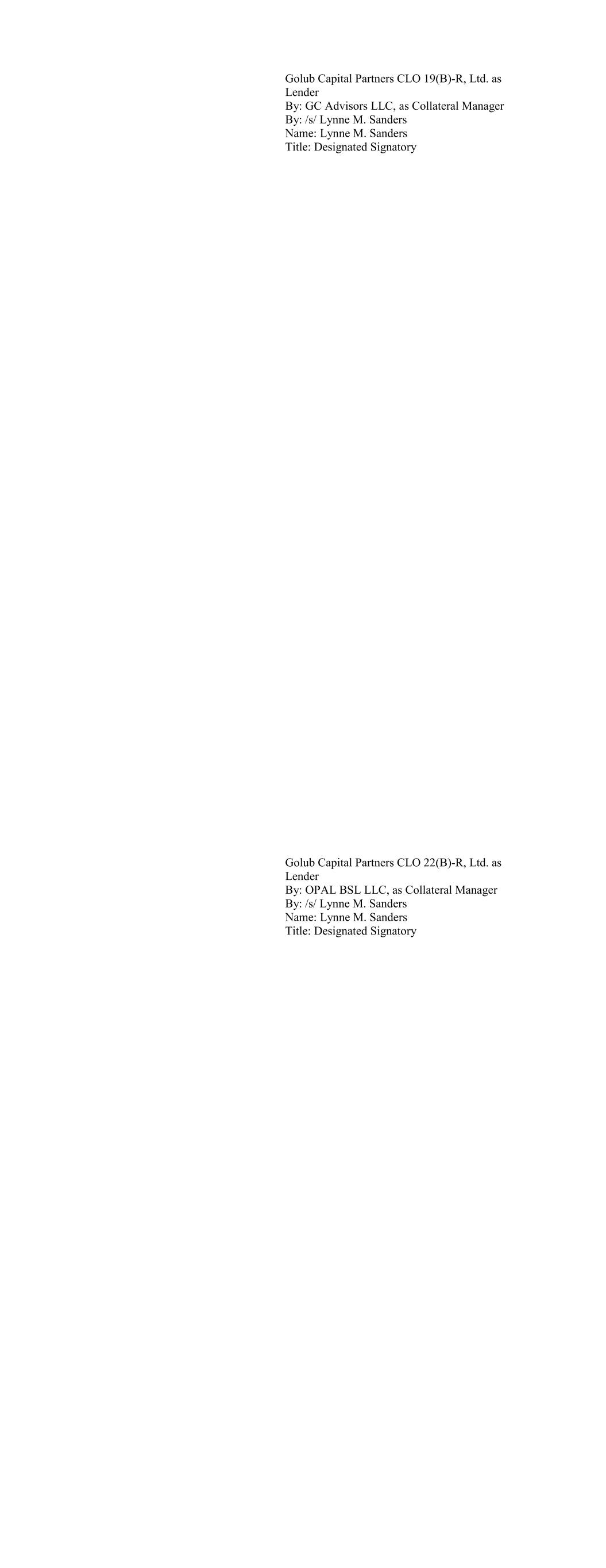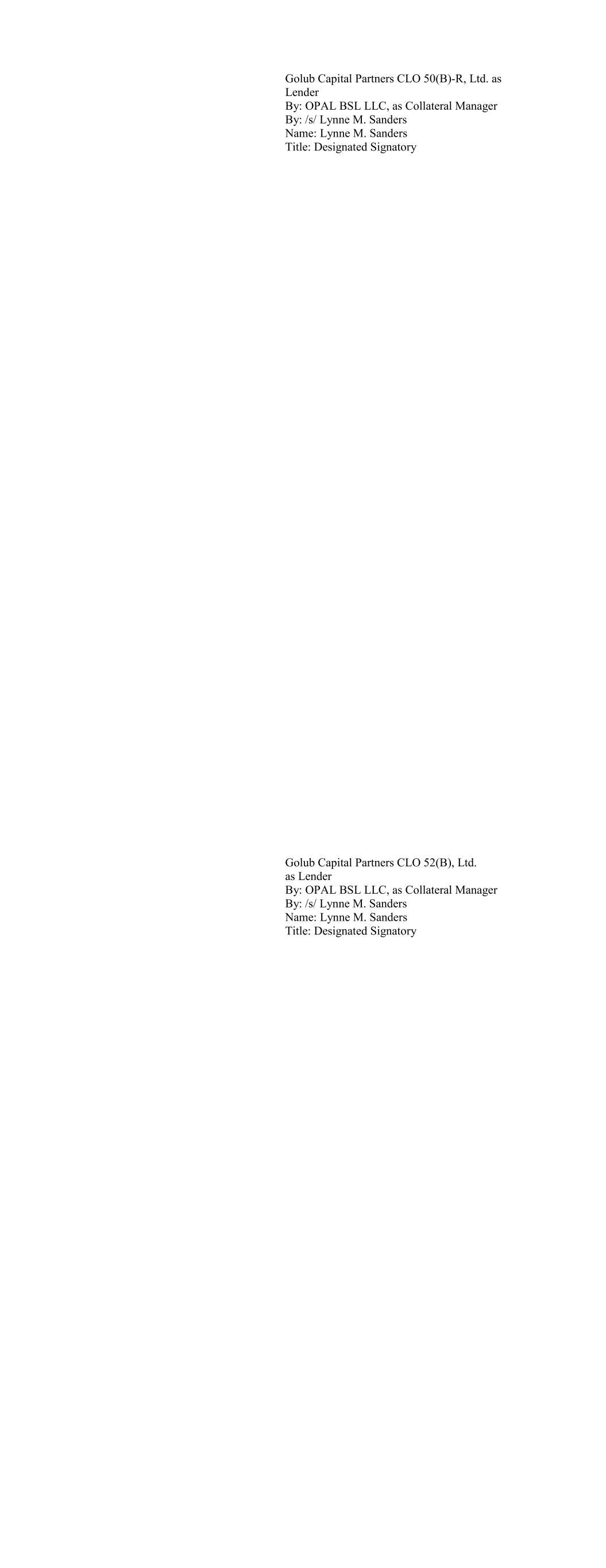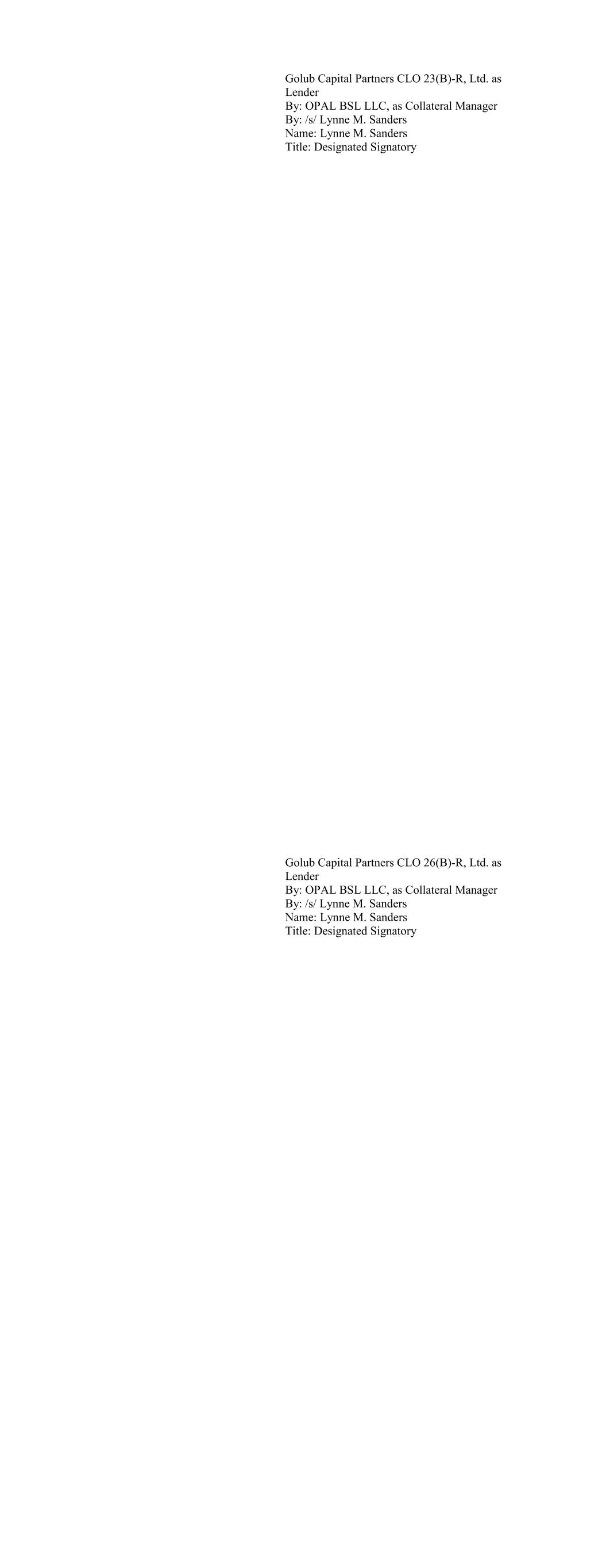 Ballyrock CLO 15 Ltd. as Lender By: Ballyrock Investment Advisors LLC, as Collateral Manager By: /s/ Christopher Maher Name: Christopher Maher Title: Authorized Signatory Ballyrock CLO 16 LTD as Lender By: Ballyrock Investment Advisors LLC, as Collateral Manager By: /s/ Christopher Maher Name: Christopher Maher Title: Authorized Signatory