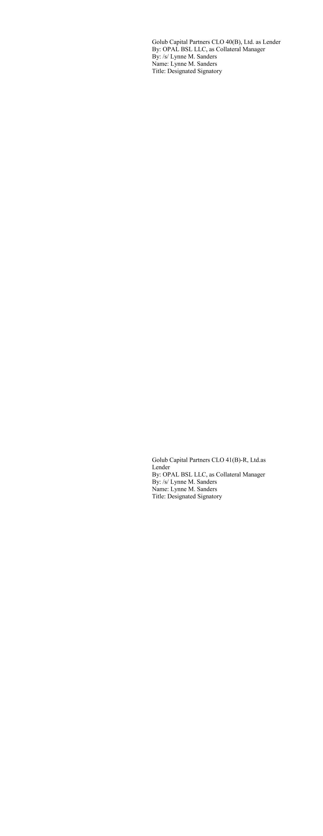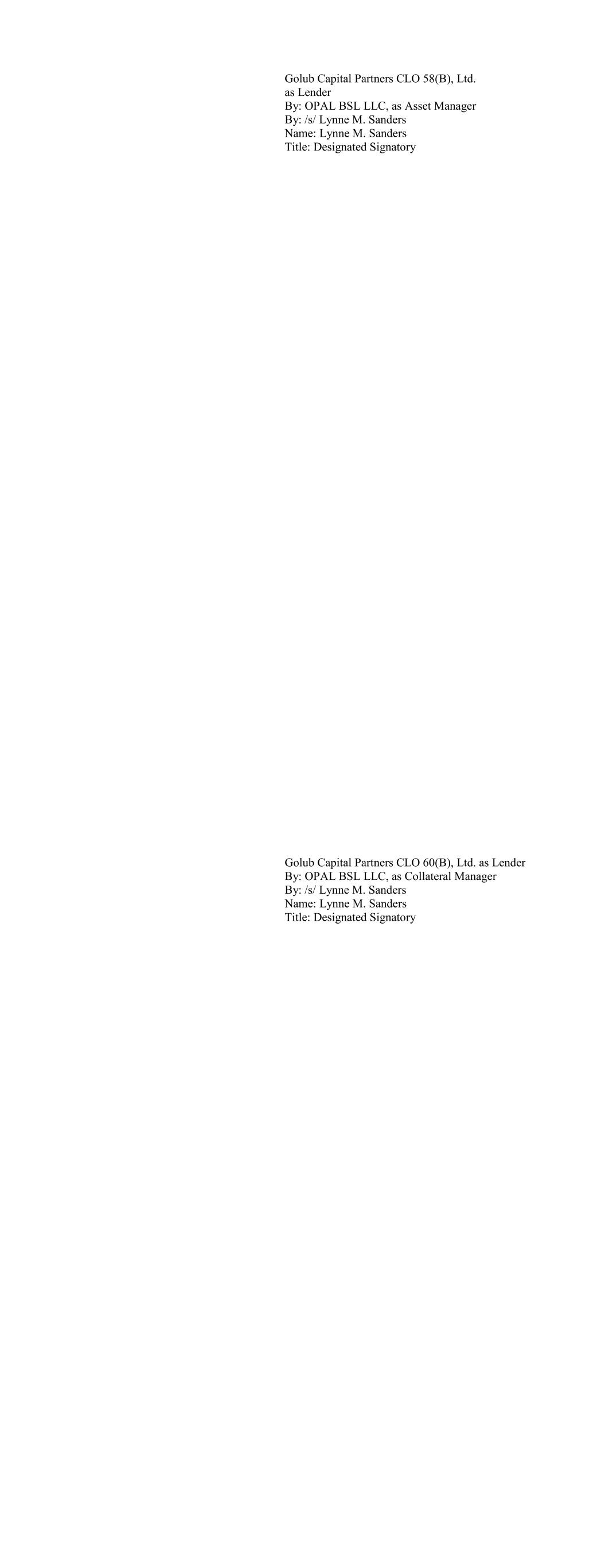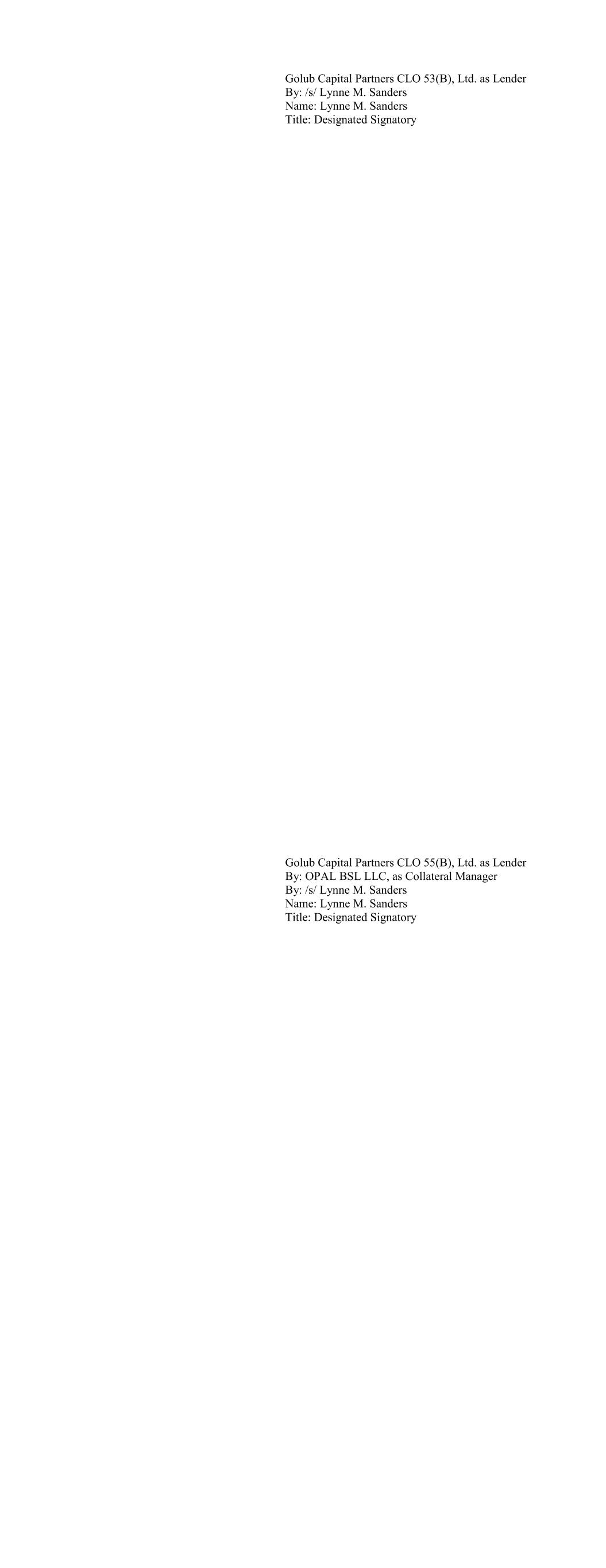 Ballyrock CLO 15 Ltd. as Lender By: Ballyrock Investment Advisors LLC, as Collateral Manager By: /s/ Christopher Maher Name: Christopher Maher Title: Authorized Signatory Ballyrock CLO 16 LTD as Lender By: Ballyrock Investment Advisors LLC, as Collateral Manager By: /s/ Christopher Maher Name: Christopher Maher Title: Authorized Signatory