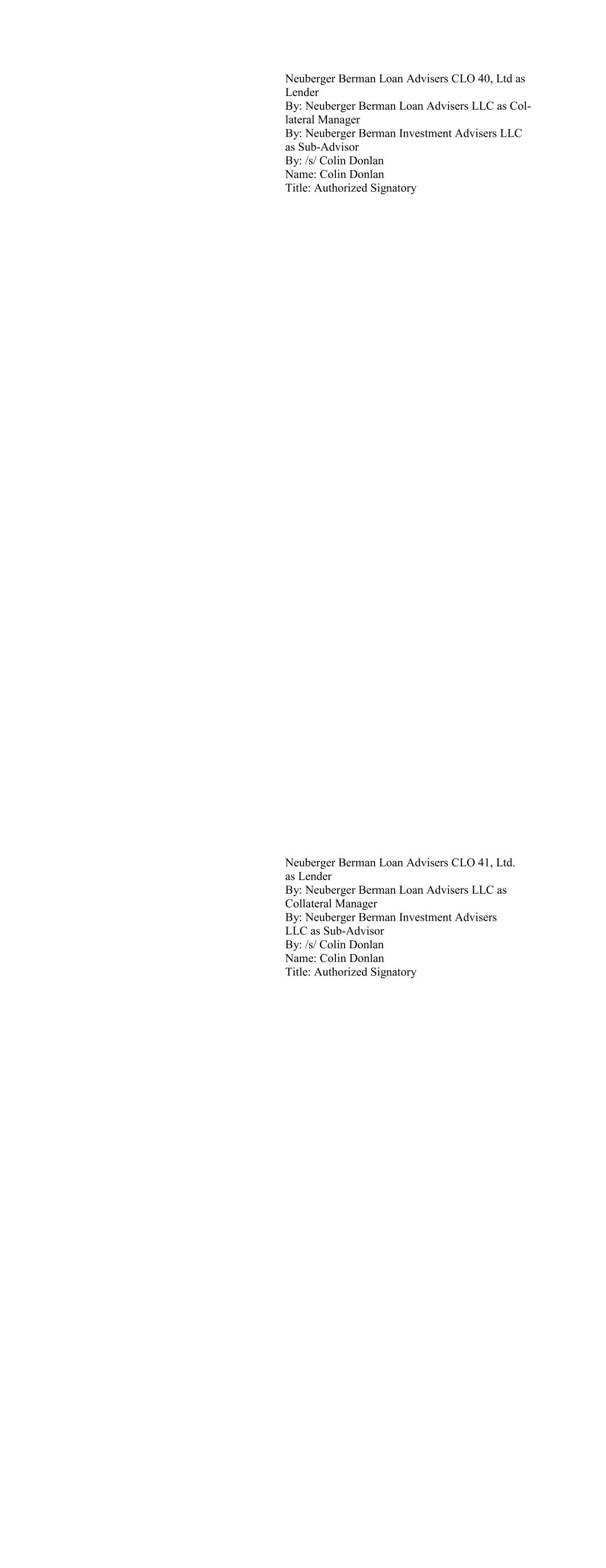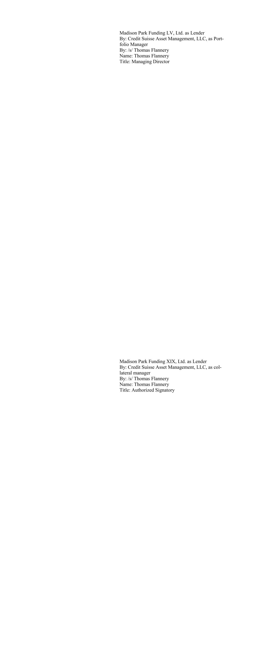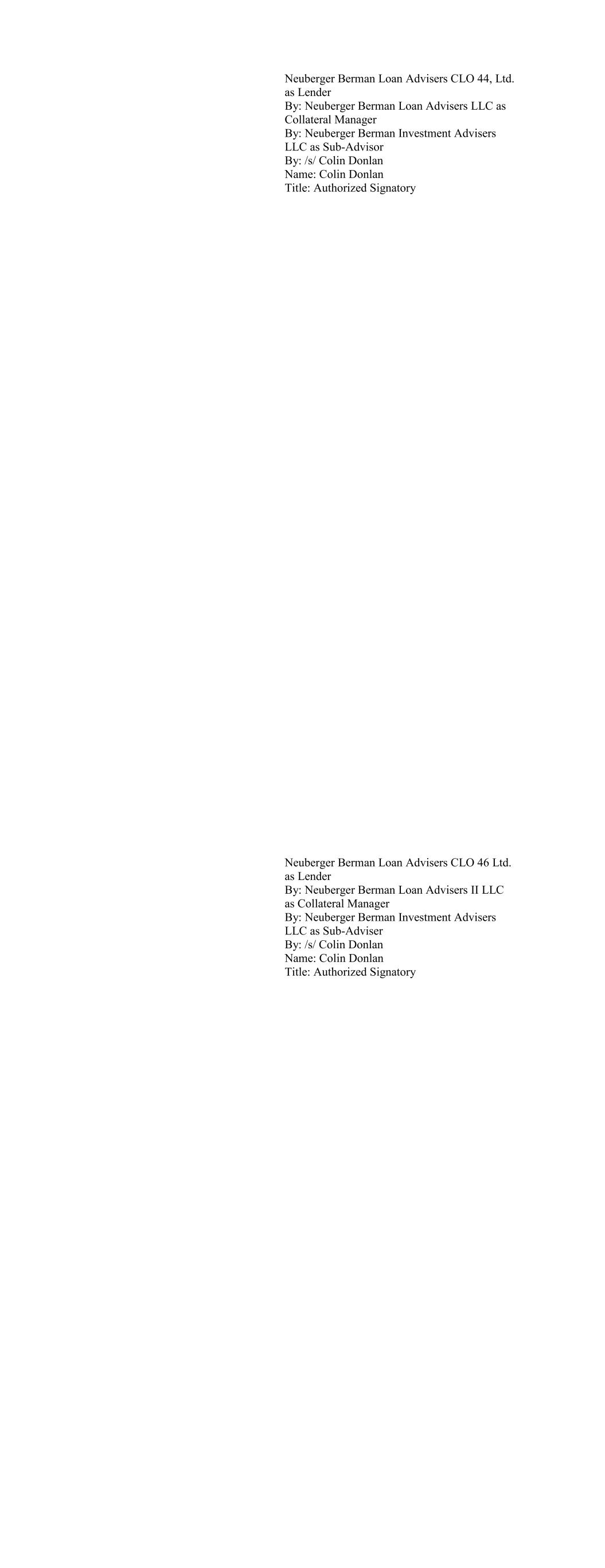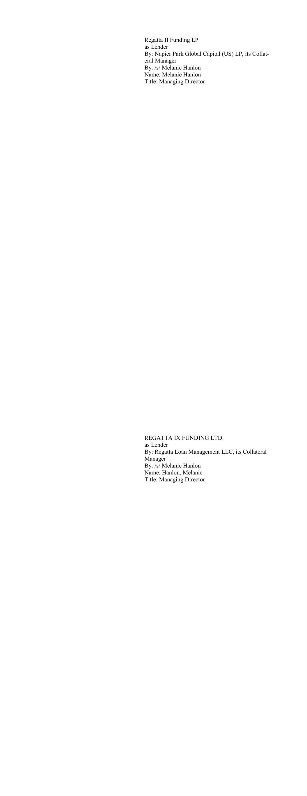 CIFC Funding 2018-V, Ltd., as Lender By: CIFC CLO Management II LLC, its Collateral Manager, by and on behalf of each of its series, Se- ries M-1, Series O-1 and Series R-1 By: /s/ Michael Nespola Name: Michael Nespola Title: Managing Director, Portfolio Manager CIFC Funding 2019-I, Ltd., as Lender By: CIFC CLO MANAGEMENT II LLC, as Col- lateral Manager By and on behalf of each of its series, SERIES M-1, SERIES O-1, and SERIES R-1 By: /s/ Michael Nespola Name: Michael Nespola Title: Managing Director, Portfolio Manager