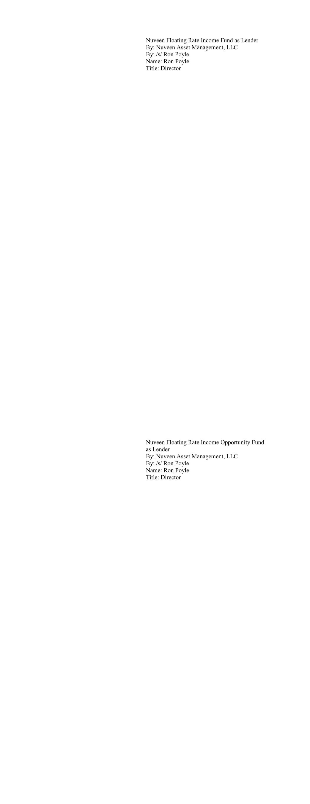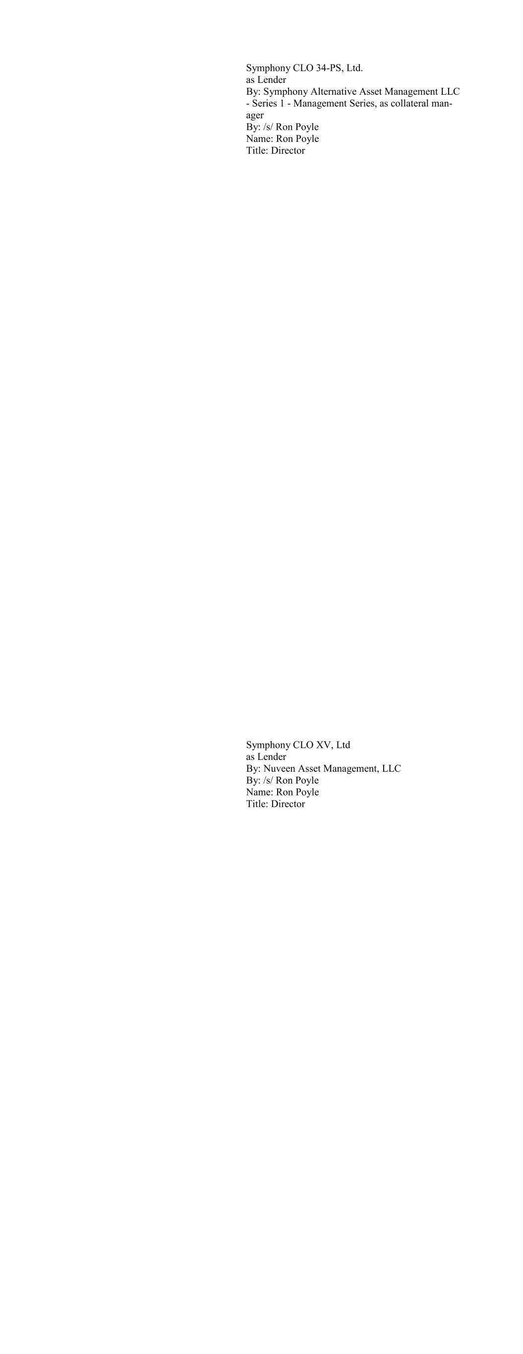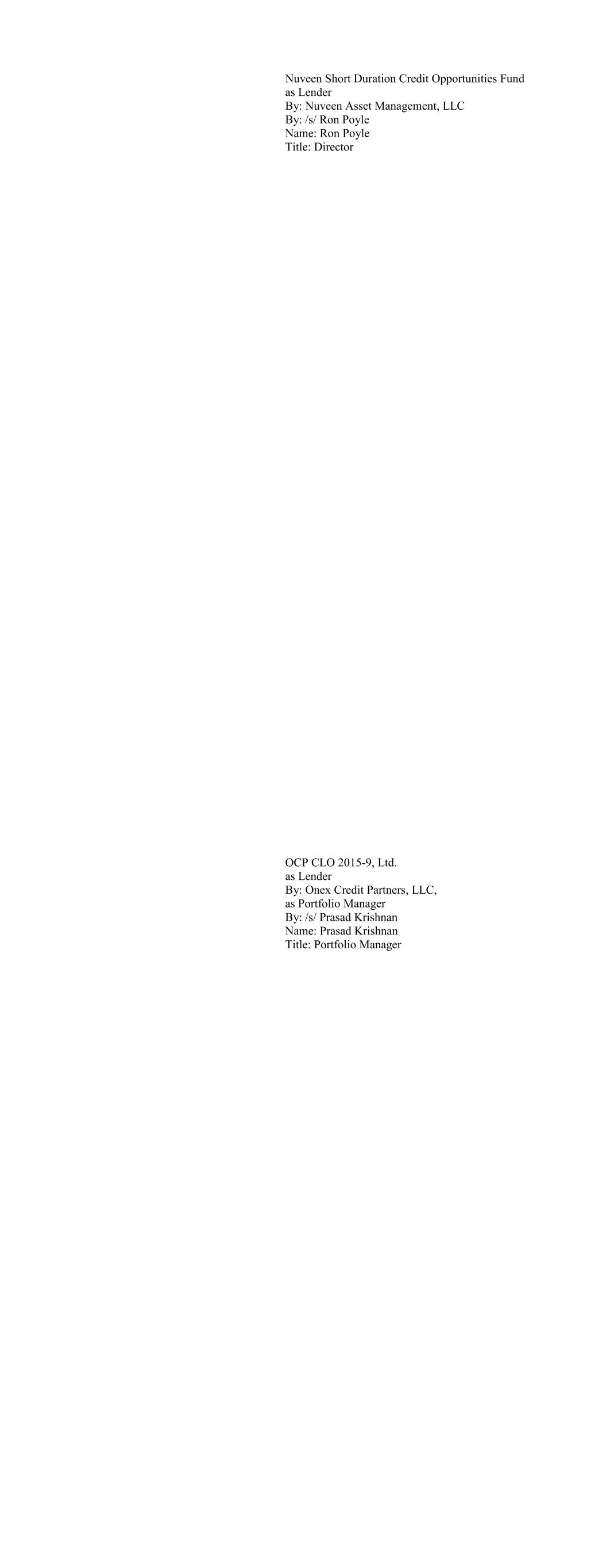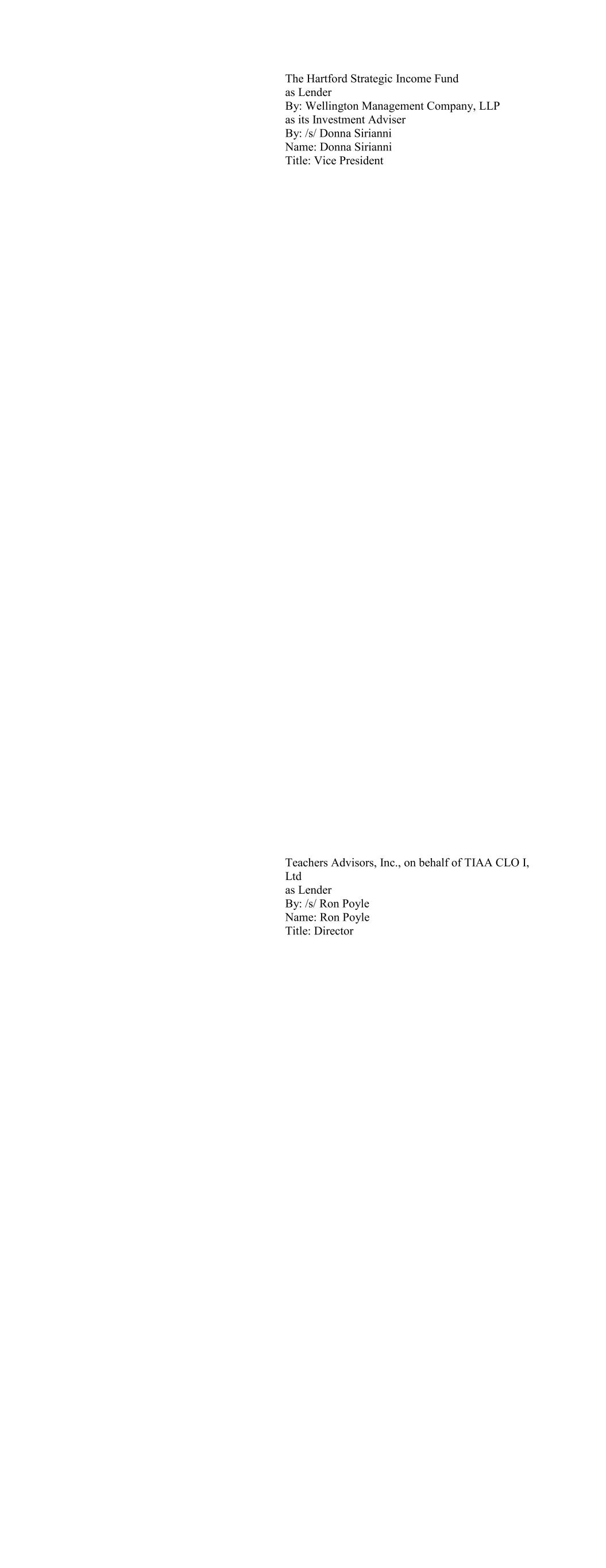Teachers Advisors, LLC on behalf of TIAA CLO III Ltd as Lender By: /s/ Ron Poyle Name: Ron Poyle Title: Director TIAA CLO IV Ltd. as Lender By: Teachers Advisors, LLC, on behalf of TIAA CLO IV, Ltd By: /s/ Ron Poyle Name: Ron Poyle Title: Director