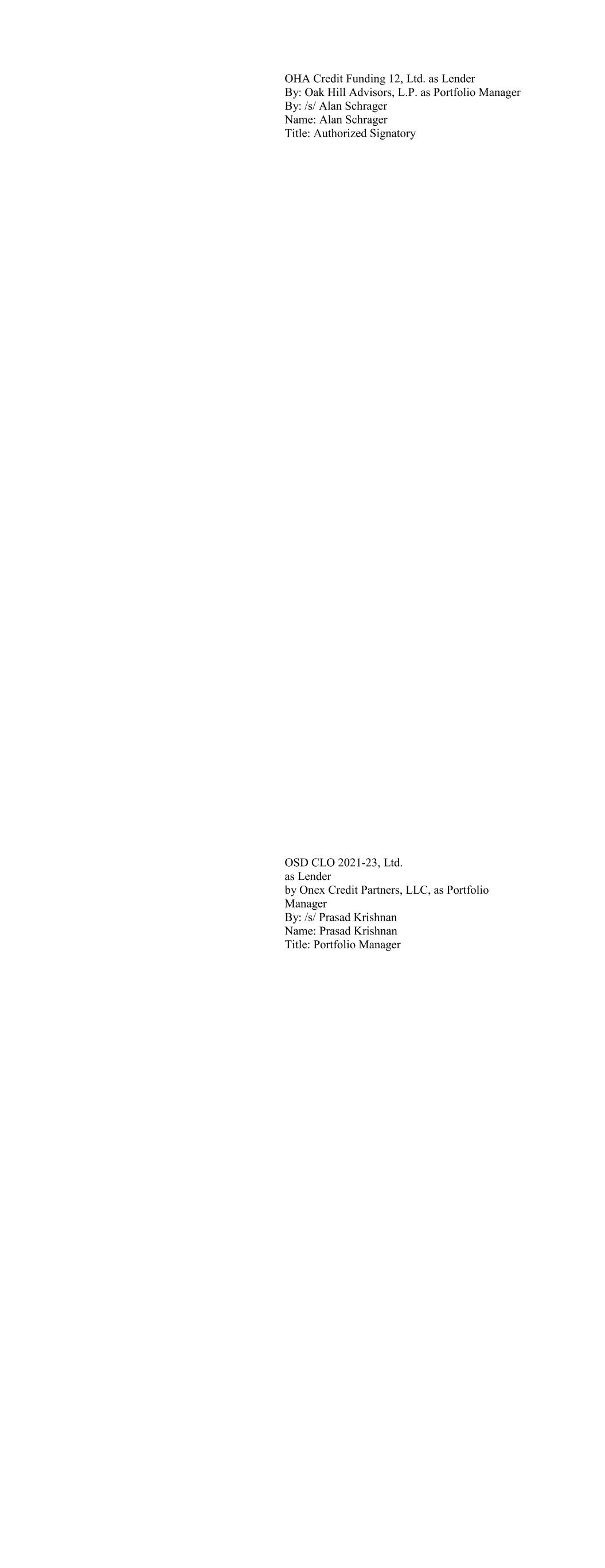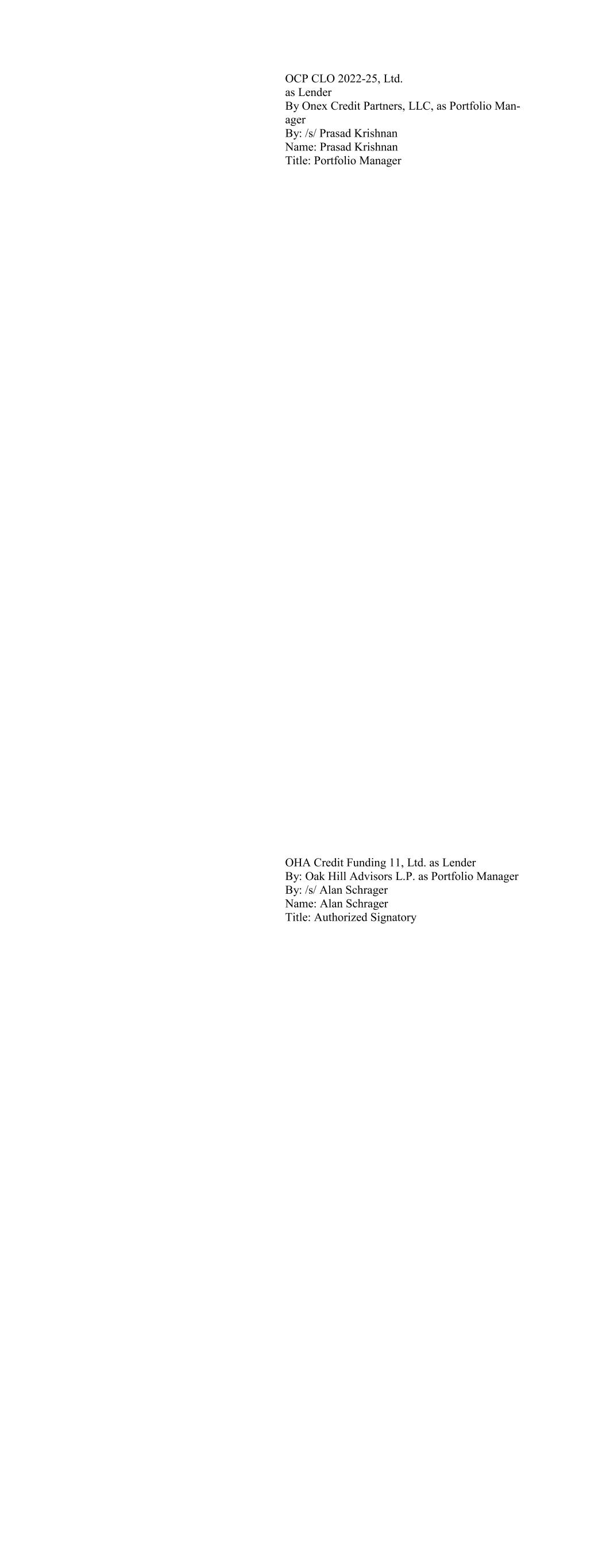Canyon CLO 2022-1, Ltd. as Lender By: Canyon CLO Advisors LLC its Collateral Manager By: /s/ Jonathan M. Kaplan Name: Jonathan M. Kaplan Title: Authorized Signatory Carlyle C17 CLO, Ltd. as Lender By: /s/ Lauren Basmadjian Name: Lauren Basmadjian Title: Managing Director