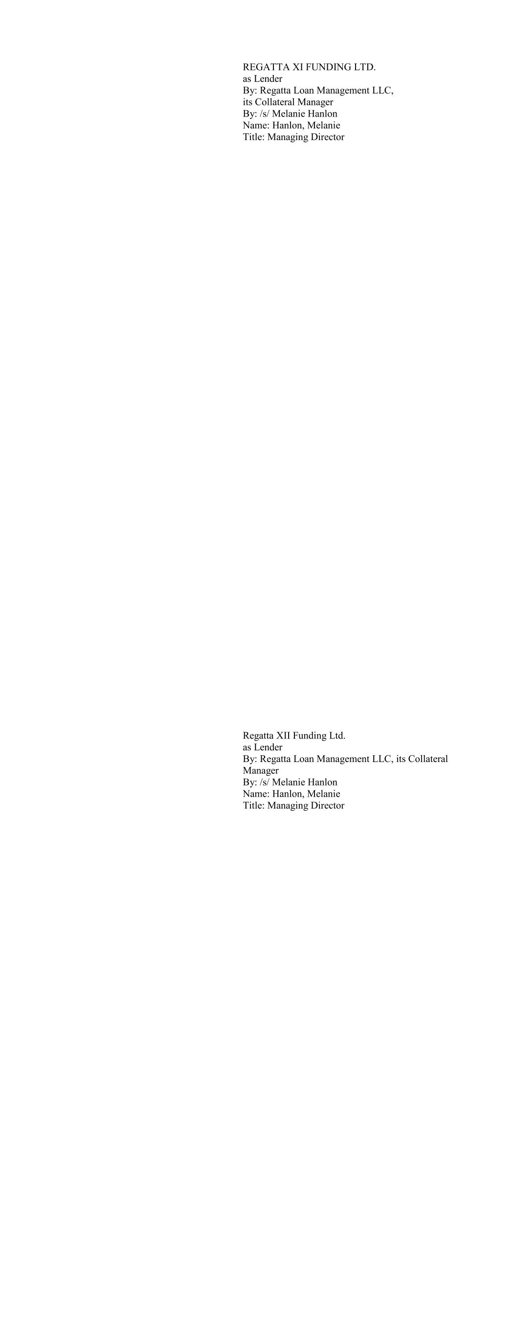 Wellfleet CLO 2020-2, Ltd. as Lender By: Wellfleet Credit Partners, LLC As Collateral Manager By: /s/ Dennis Talley Name: Dennis Talley Title: Portfolio Manager Wellfleet CLO 2021-1, Ltd. as Lender (fka Wellfleet CLO 2020-3, Ltd.) By: Wellfleet Credit Partners, LLC As Collateral Manager By: /s/ Dennis Talley Name: Dennis Talley Title: Portfolio Manager