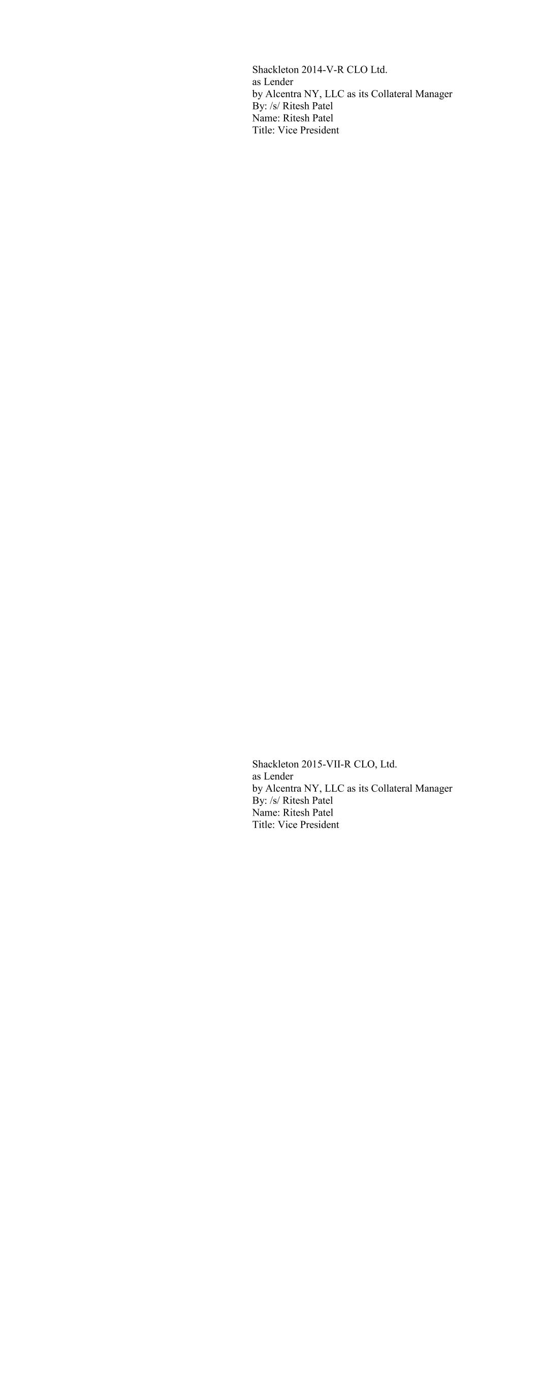 CIFC Funding 2014-V, Ltd., as Lender By: CIFC Asset Management LLC, its Collateral Manager By: /s/ Michael Nespola Name: Michael Nespola Title: Managing Director, Portfolio Manager CIFC Funding 2015-I, Ltd., as Lender By: CIFC VS MANAGEMENT LLC, its Collateral Manager By: /s/ Michael Nespola Name: Michael Nespola Title: Managing Director, Portfolio Manager