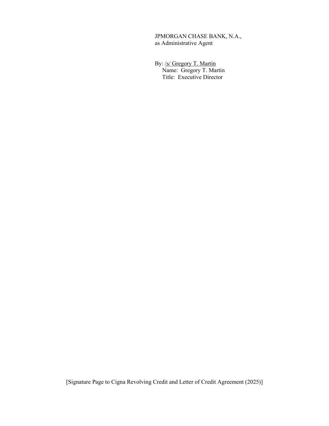 [Signature Page to Cigna Revolving Credit and Letter of Credit Agreement (2025)] JPMORGAN CHASE BANK, N.A., as Administrative Agent By: /s/ Gregory T. Martin Name: Gregory T. Martin Title: Executive Director