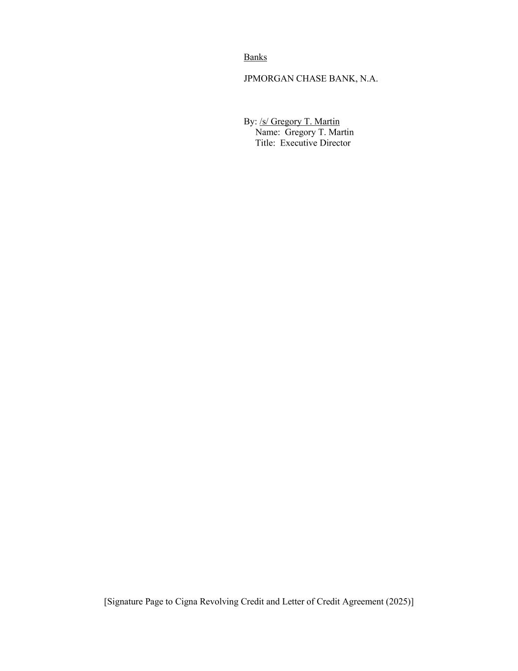 [Signature Page to Cigna Revolving Credit and Letter of Credit Agreement (2025)] Banks JPMORGAN CHASE BANK, N.A. By: /s/ Gregory T. Martin Name: Gregory T. Martin Title: Executive Director