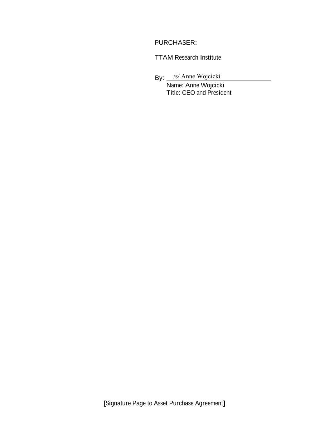 [Signature Page to Asset Purchase Agreement] PURCHASER: TTAM Research Institute By: Name: Anne Wojcicki Title: CEO and President /s/ Anne Wojcicki