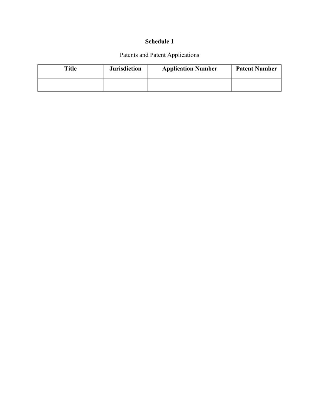 Schedule 1 Patents and Patent Applications Title Jurisdiction Application Number Patent Number