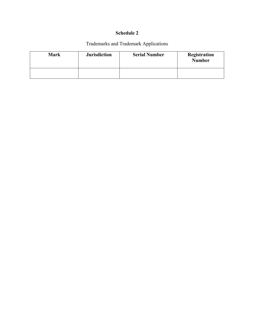 Schedule 2 Trademarks and Trademark Applications Mark Jurisdiction Serial Number Registration Number