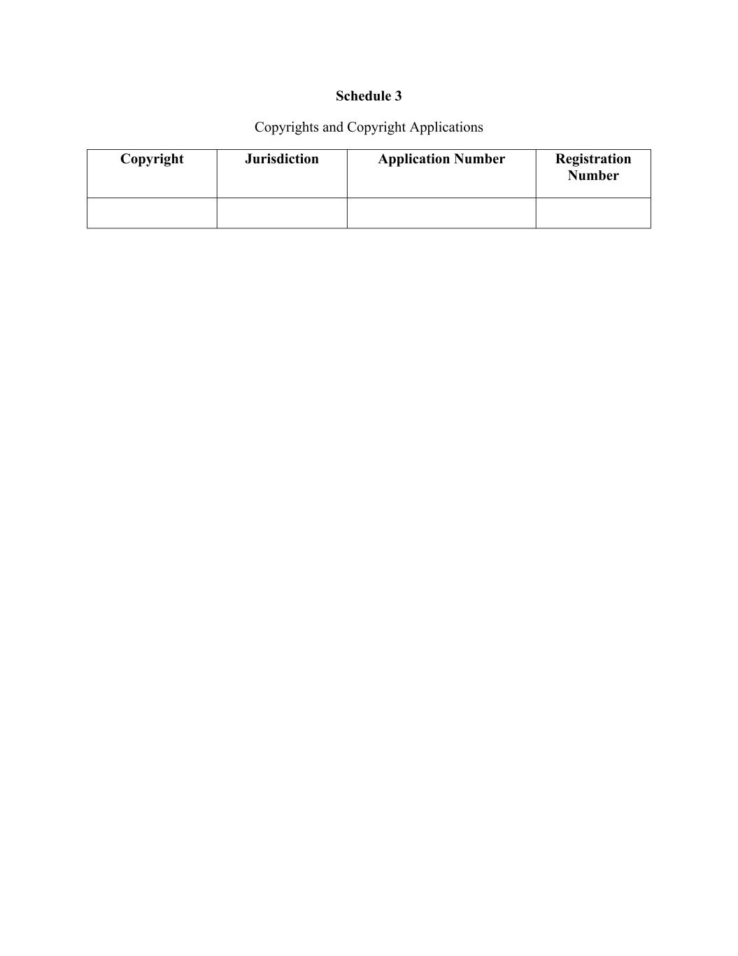 Schedule 3 Copyrights and Copyright Applications Copyright Jurisdiction Application Number Registration Number