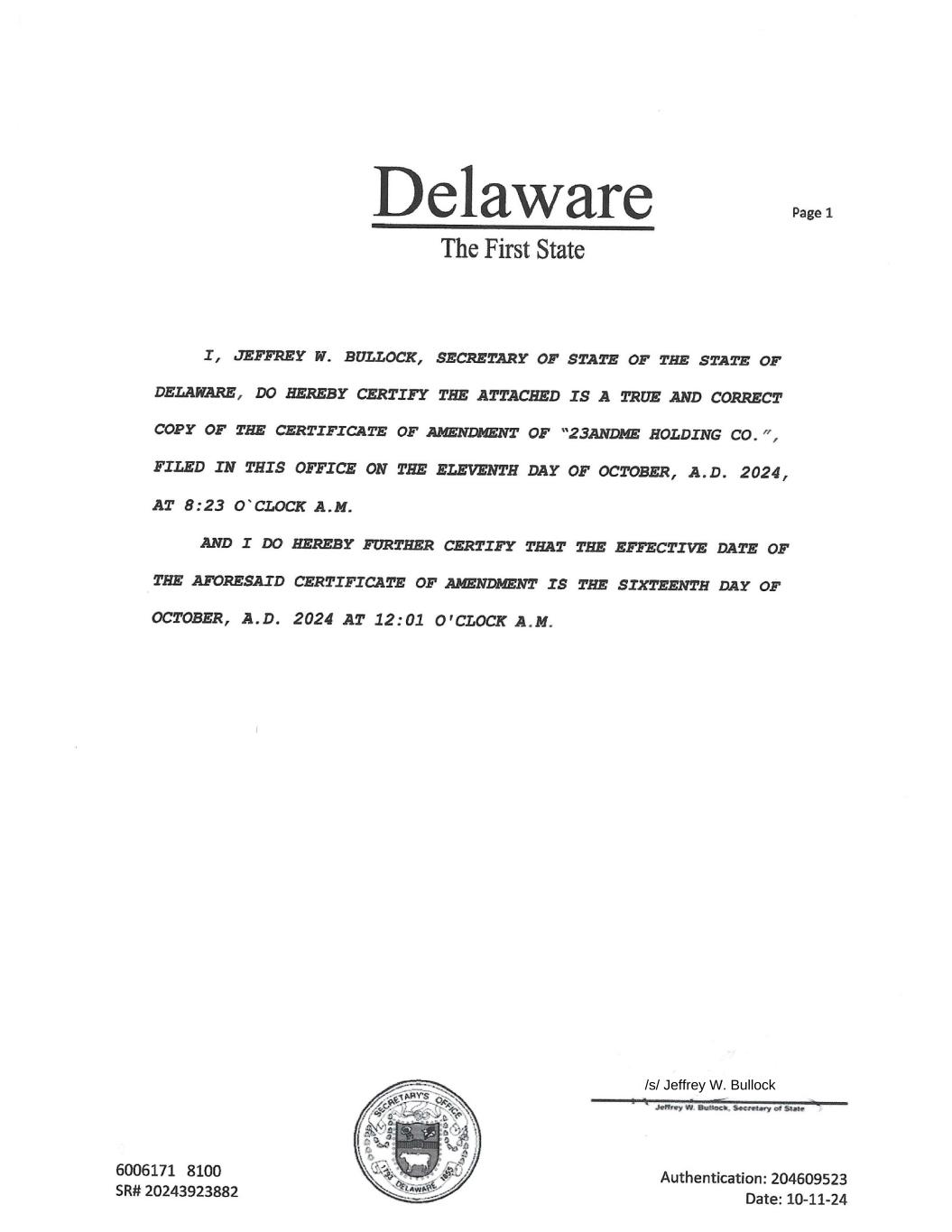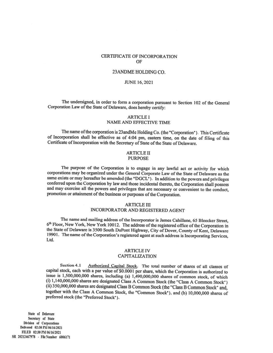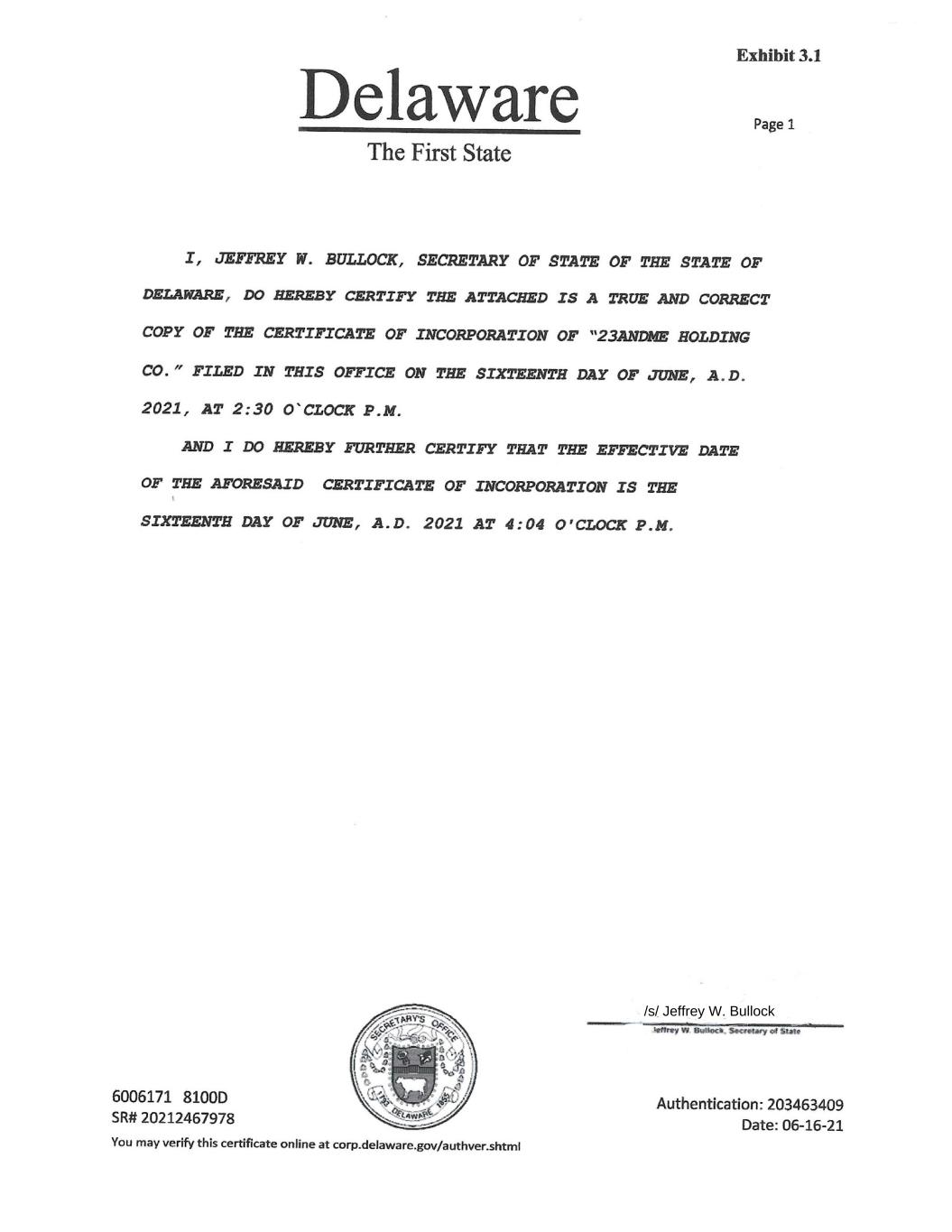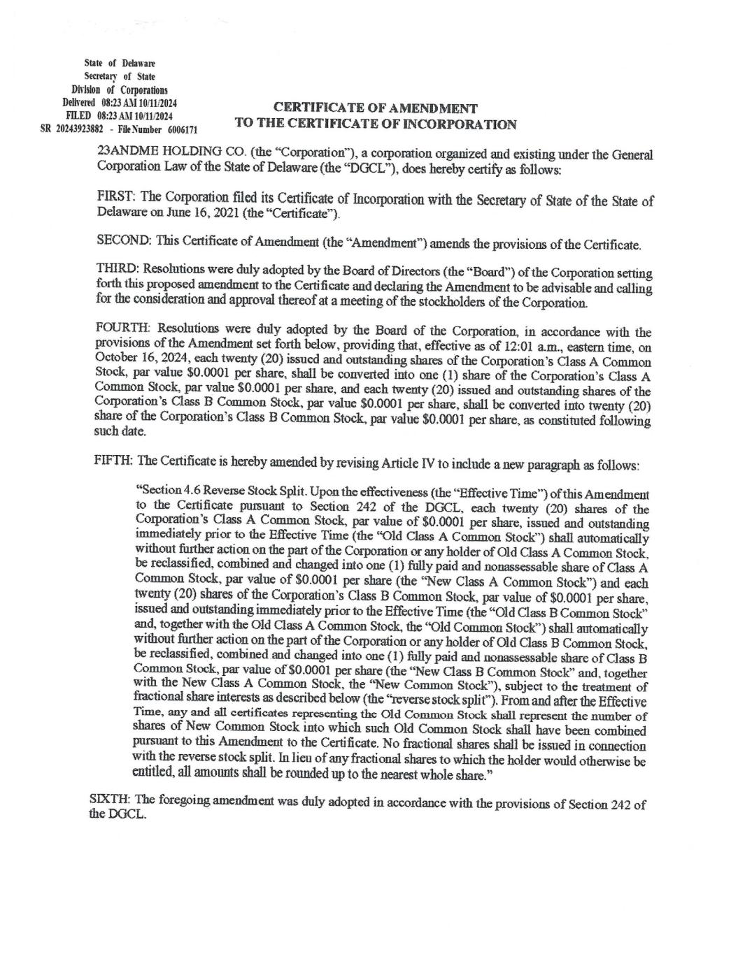 EX-3.1* 2 me-20241231xex31.htm EX-3.1* me-20241231xex31