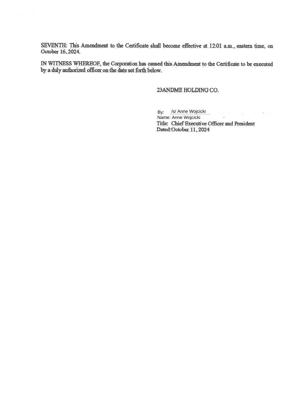 Anne Wojcicki Name: /s/ Anne Wojcicki By: