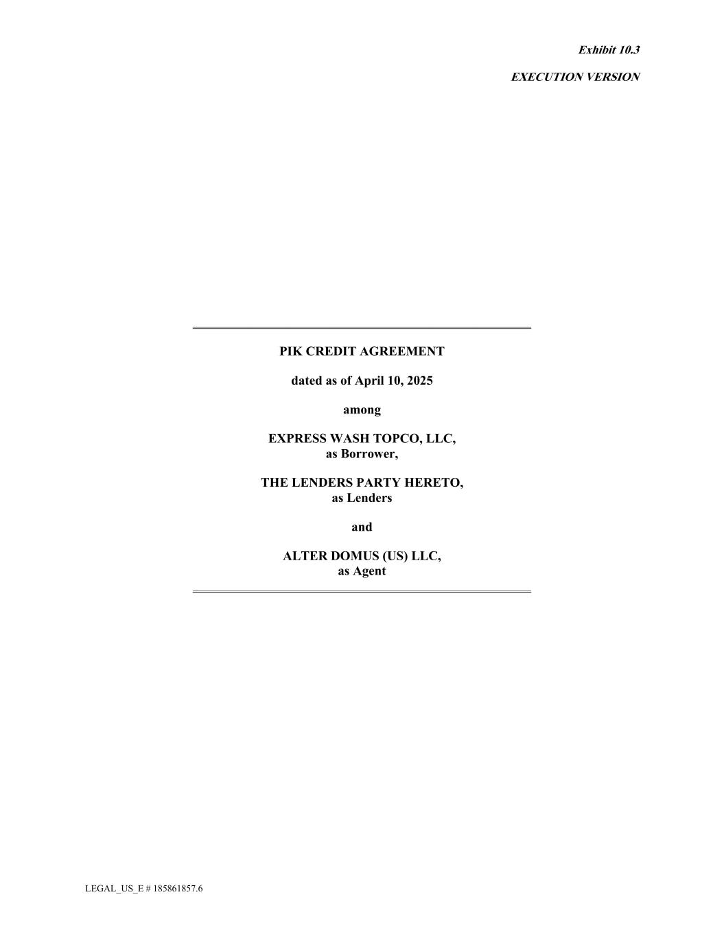 Exhibit 10.3 EXECUTION VERSION LEGAL_US_E # 185861857.6 ____________________________________________________ PIK CREDIT AGREEMENT dated as of April 10, 2025 among EXPRESS WASH TOPCO, LLC, as Borrower, THE LENDERS PARTY HERETO, as Lenders and ALTER DOMUS (US) LLC, as Agent ____________________________________________________