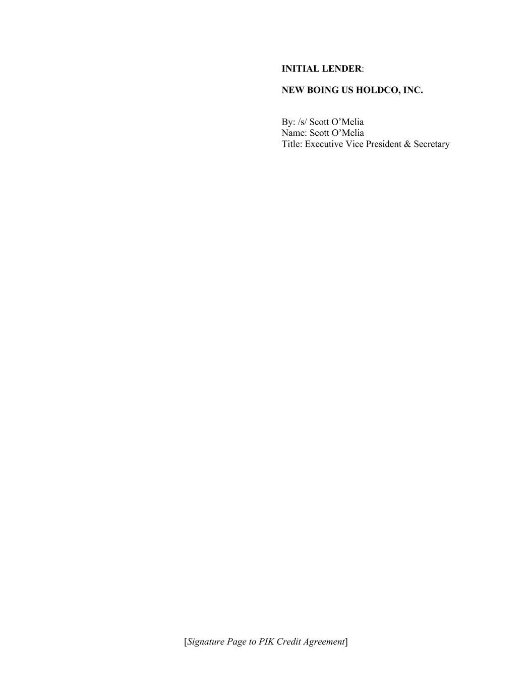 [Signature Page to PIK Credit Agreement] INITIAL LENDER: NEW BOING US HOLDCO, INC. By: /s/ Scott O’Melia Name: Scott O’Melia Title: Executive Vice President & Secretary