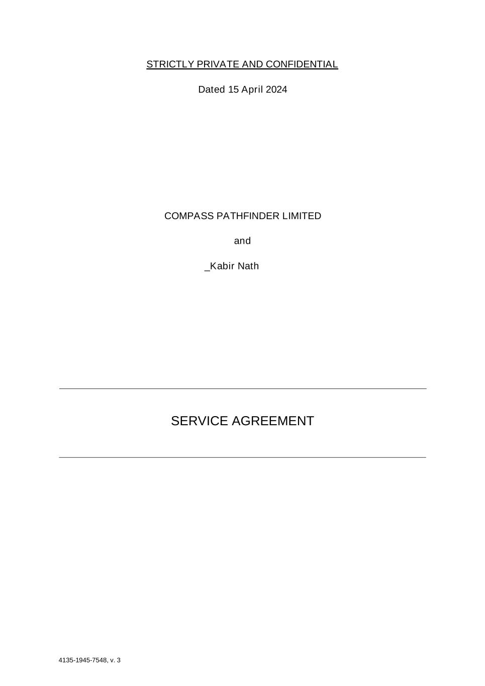 4135-1945-7548, v. 3 STRICTLY PRIVATE AND CONFIDENTIAL Dated 15 April 2024 COMPASS PATHFINDER LIMITED and _Kabir Nath SERVICE AGREEMENT