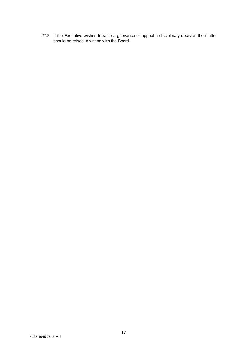 17 4135-1945-7548, v. 3 27.2 If the Executive wishes to raise a grievance or appeal a disciplinary decision the matter should be raised in writing with the Board.