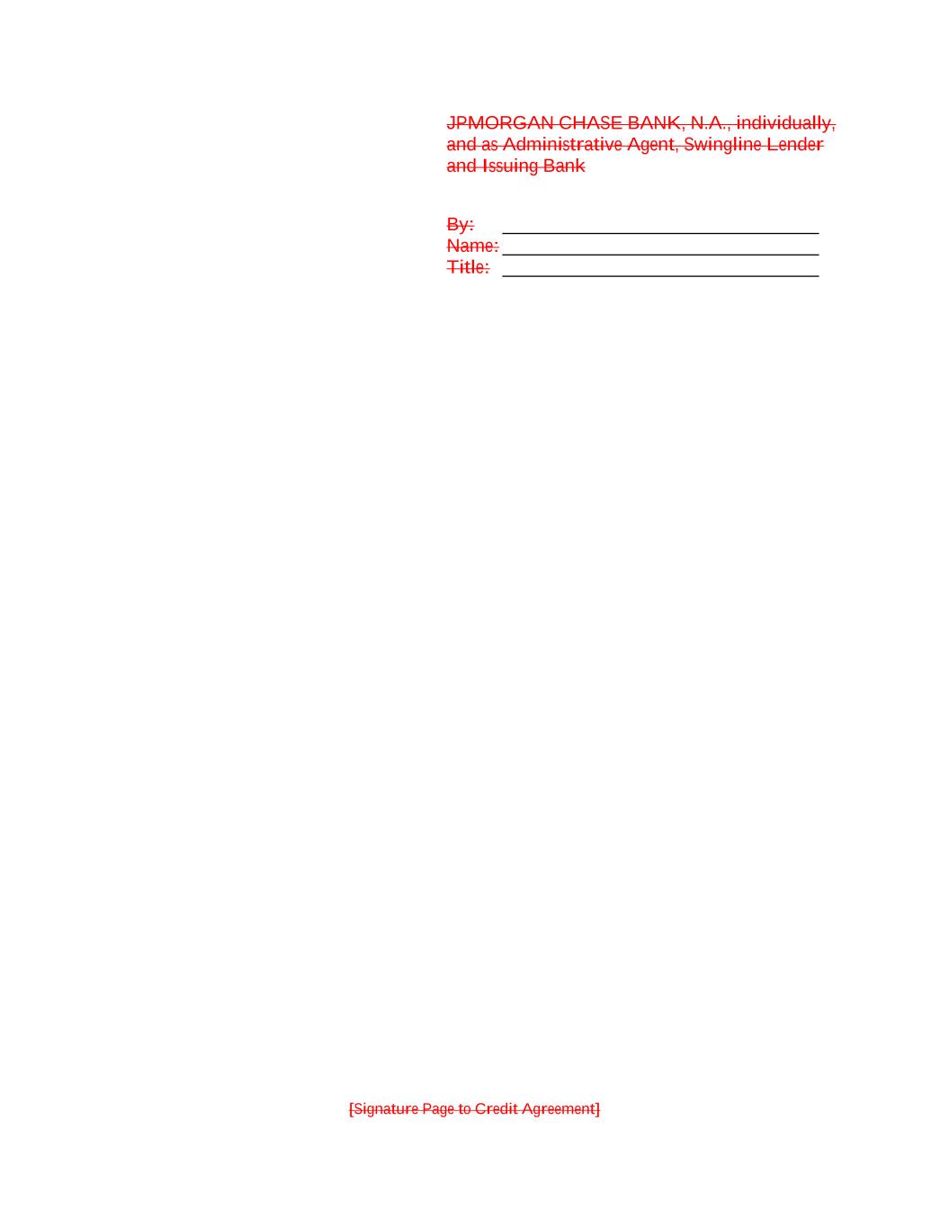 [Signature Page to Credit Agreement] JPMORGAN CHASE BANK, N.A., individually, and as Administrative Agent, Swingline Lender and Issuing Bank By: __________________________________ Name: __________________________________ Title: __________________________________