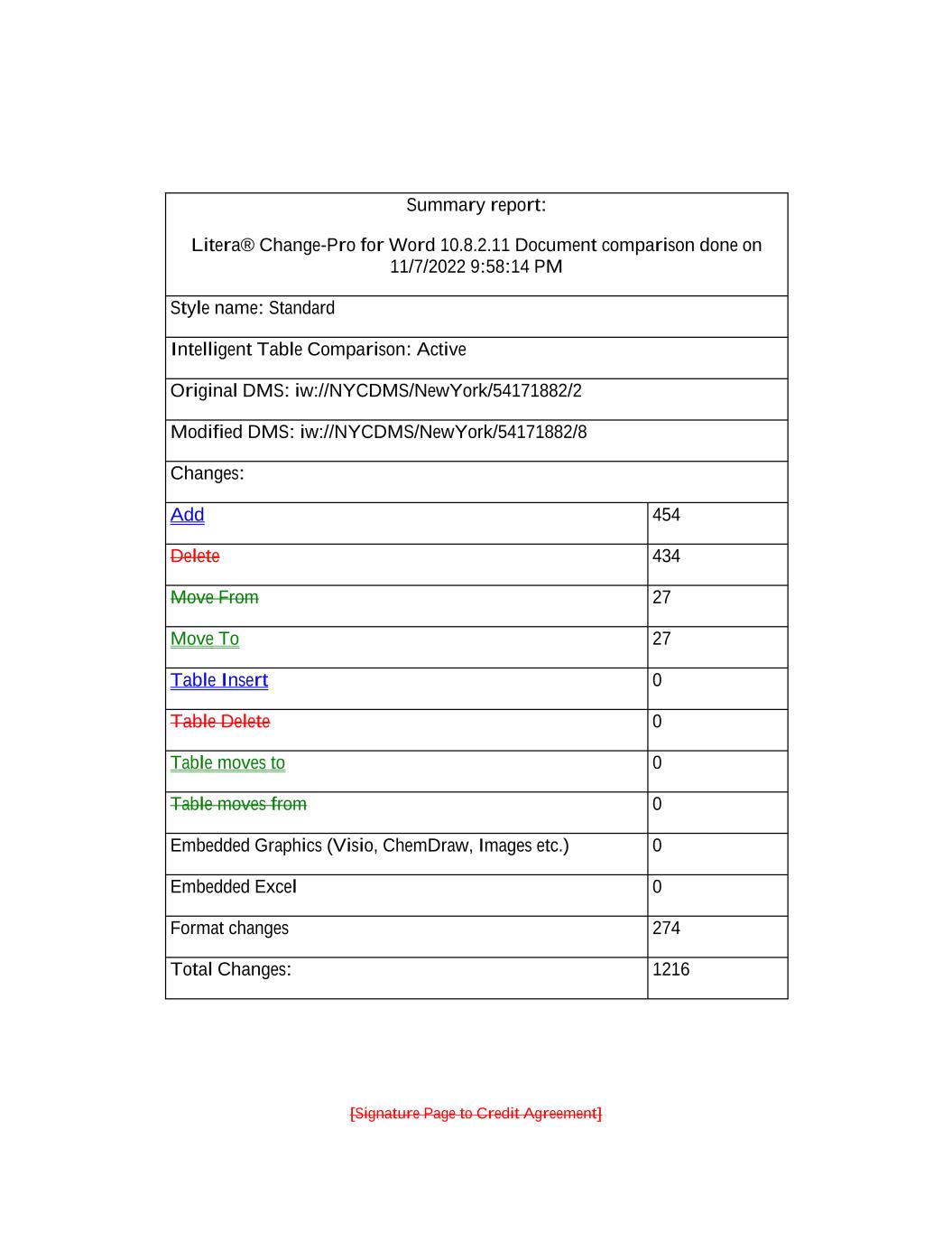 [Signature Page to Credit Agreement] Summary report: Litera® Change-Pro for Word 10.8.2.11 Document comparison done on 11/7/2022 9:58:14 PM Style name: Standard Intelligent Table Comparison: Active Original DMS: iw://NYCDMS/NewYork/54171882/2 Modified DMS: iw://NYCDMS/NewYork/54171882/8 Changes: Add 454 Delete 434 Move From 27 Move To 27 Table Insert 0 Table Delete 0 Table moves to 0 Table moves from 0 Embedded Graphics (Visio, ChemDraw, Images etc.) 0 Embedded Excel 0 Format changes 274 Total Changes: 1216