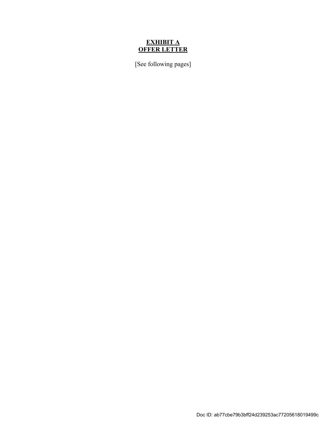 EXHIBIT A OFFER LETTER [See following pages] Doc ID: ab77cbe79b3bff24d239253ac77205618019499c