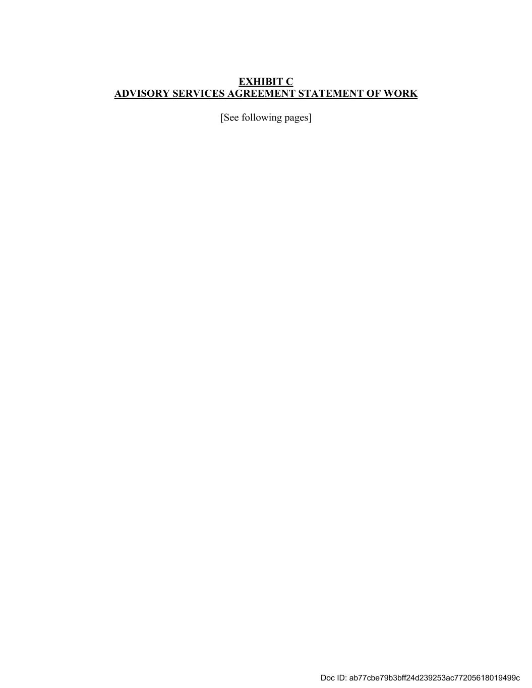 EXHIBIT C ADVISORY SERVICES AGREEMENT STATEMENT OF WORK [See following pages] Doc ID: ab77cbe79b3bff24d239253ac77205618019499c