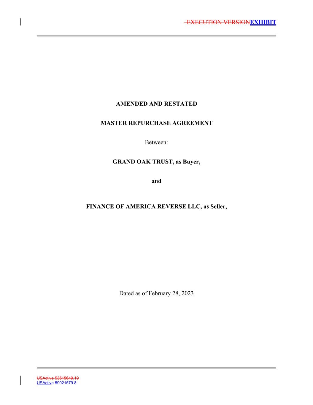 EXECUTION VERSIONEXHIBIT AMENDED AND RESTATED MASTER REPURCHASE AGREEMENT Between: GRAND OAK TRUST, as Buyer, and FINANCE OF AMERICA REVERSE LLC, as Seller, Dated as of February 28, 2023 USActive 53515649.19 USActive 59021579.8