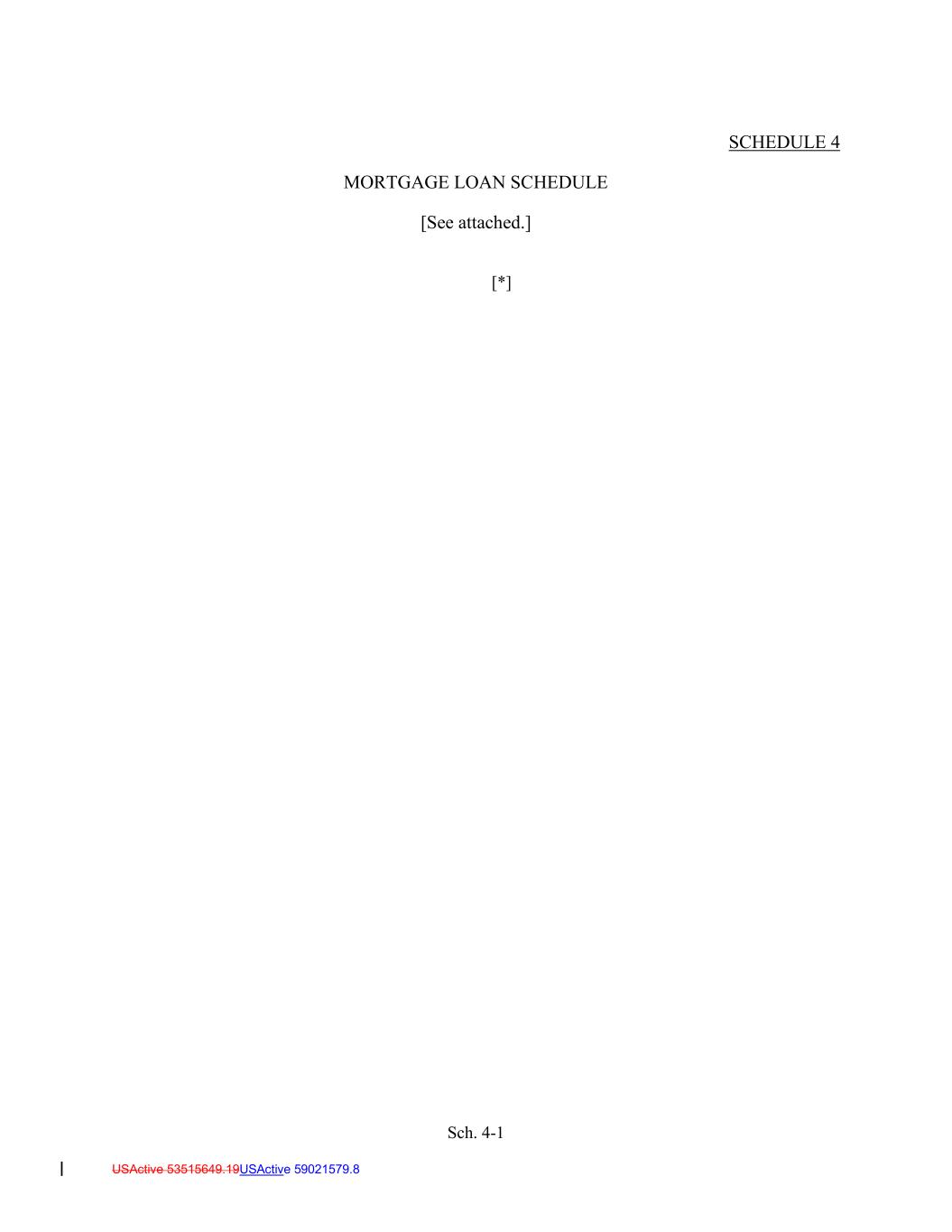 Sch. 4-1 USActive 53515649.19USActive 59021579.8 SCHEDULE 4 MORTGAGE LOAN SCHEDULE [See attached.] [*]