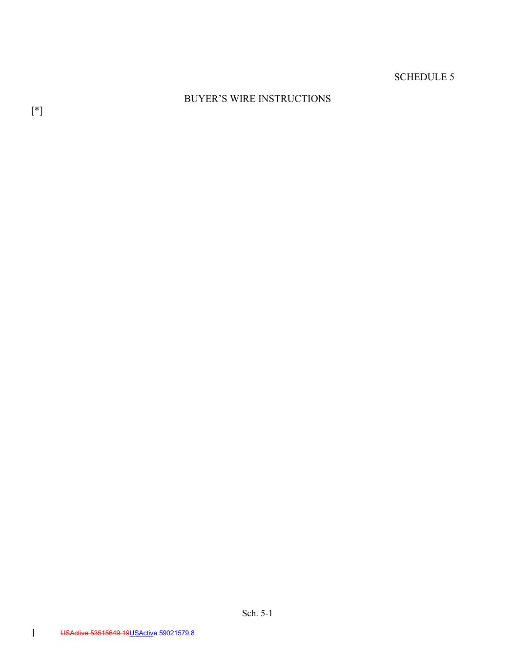 Sch. 5-1 USActive 53515649.19USActive 59021579.8 SCHEDULE 5 BUYER’S WIRE INSTRUCTIONS [*]
