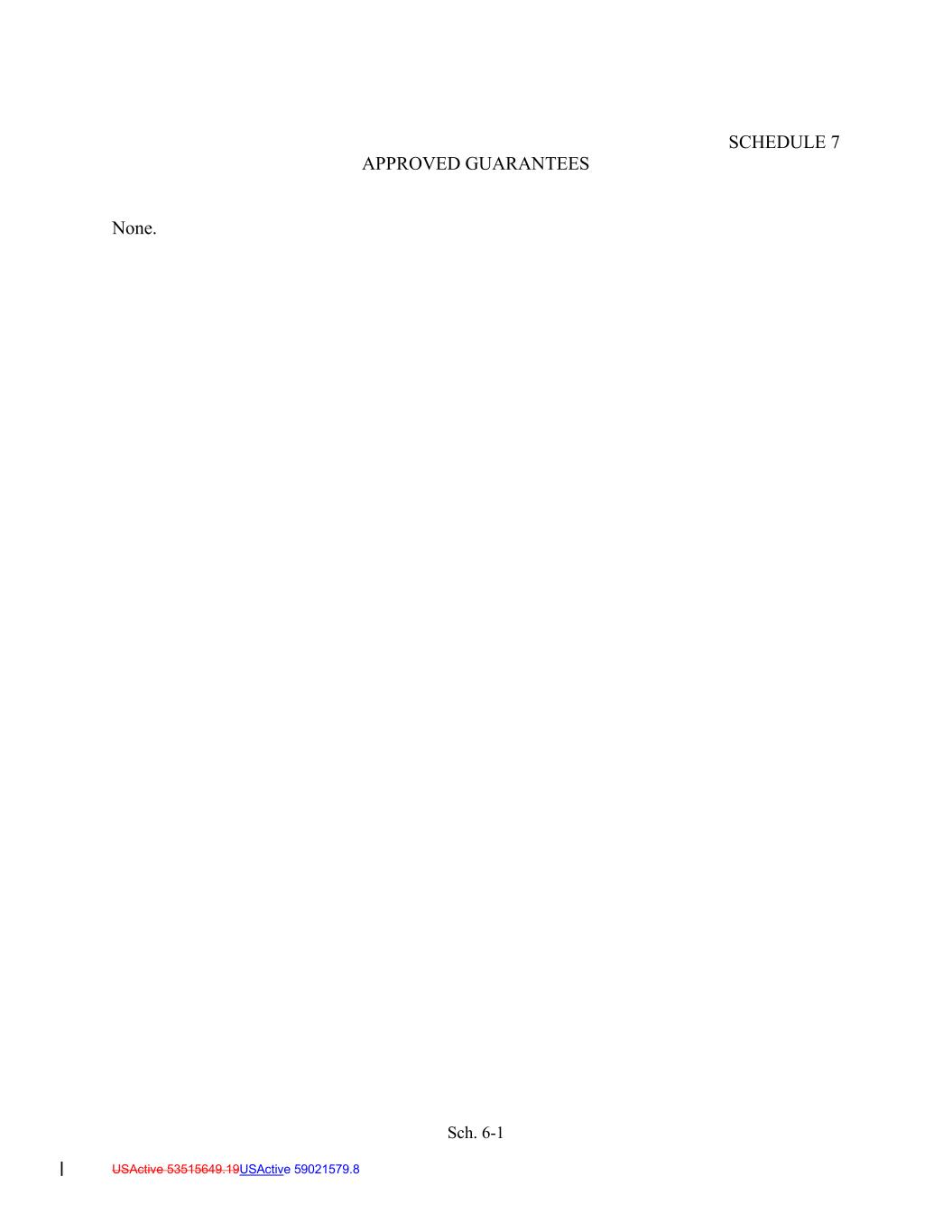 Sch. 6-1 USActive 53515649.19USActive 59021579.8 SCHEDULE 7 APPROVED GUARANTEES None.
