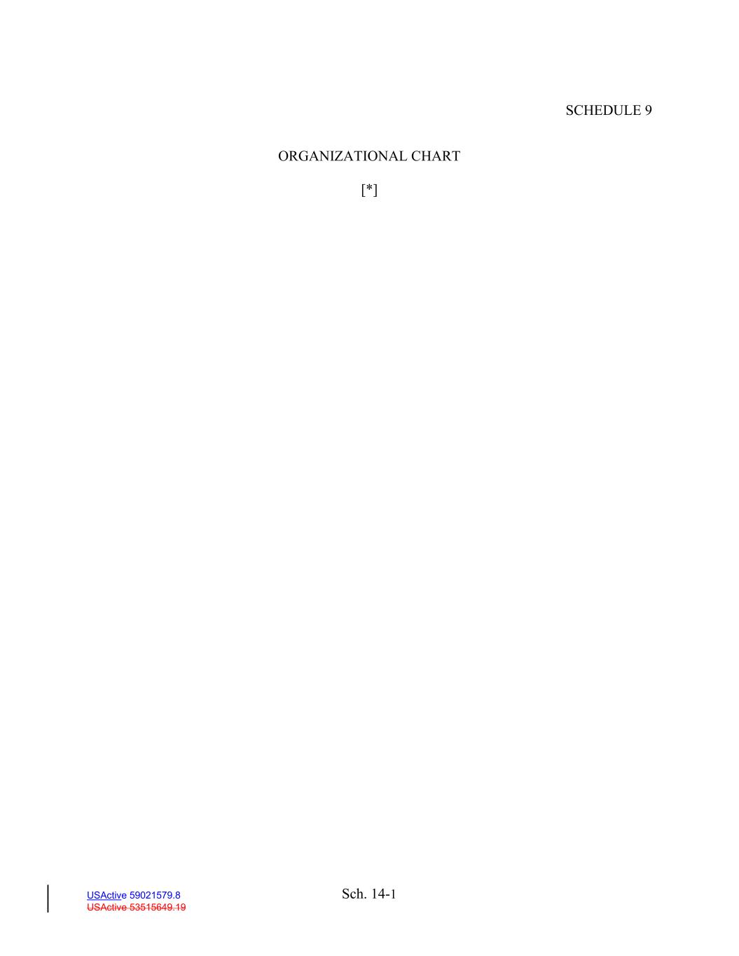 Sch. 14-1 USActive 59021579.8 USActive 53515649.19 SCHEDULE 9 ORGANIZATIONAL CHART [*]