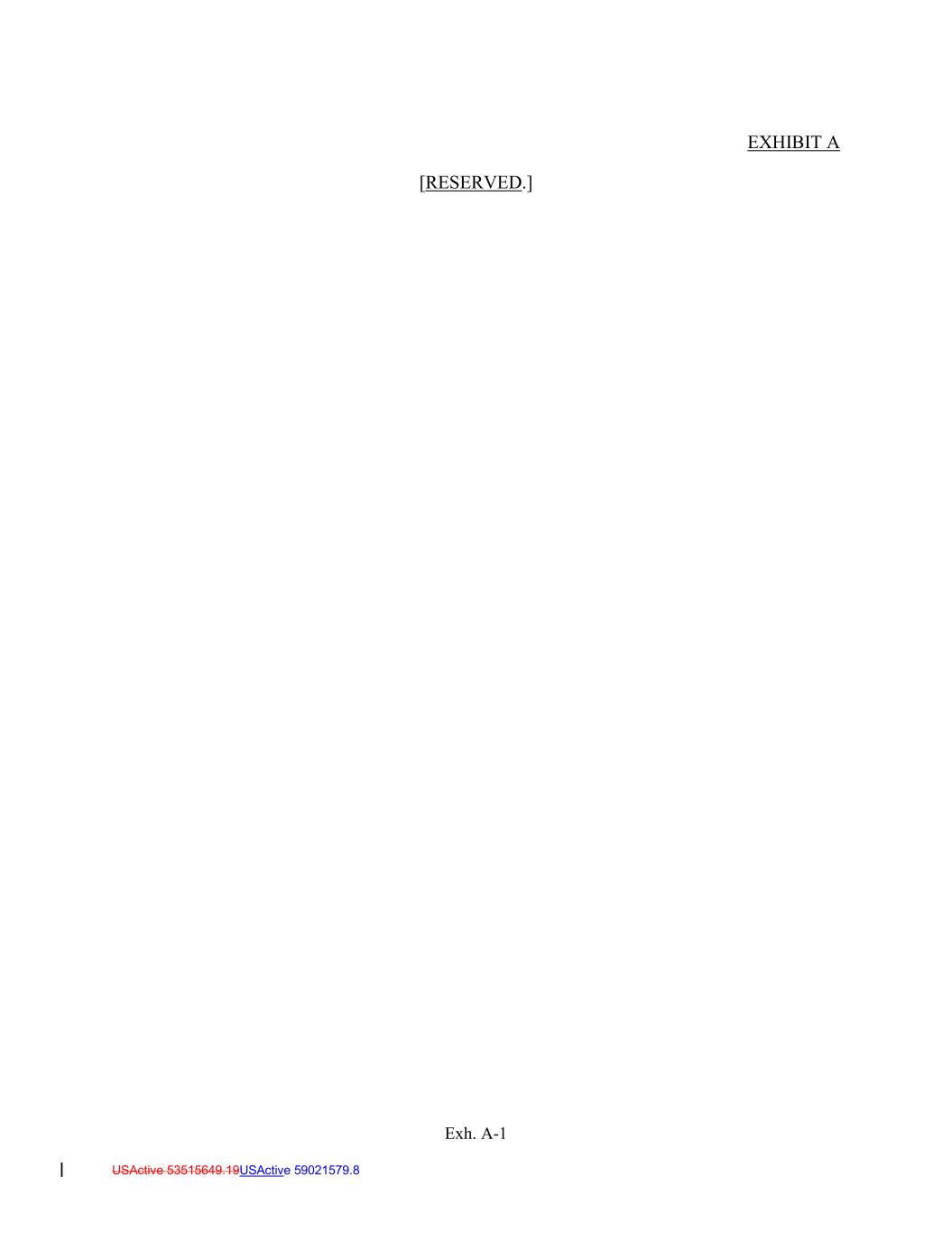 USActive 53515649.19USActive 59021579.8 EXHIBIT A [RESERVED.] Exh. A-1