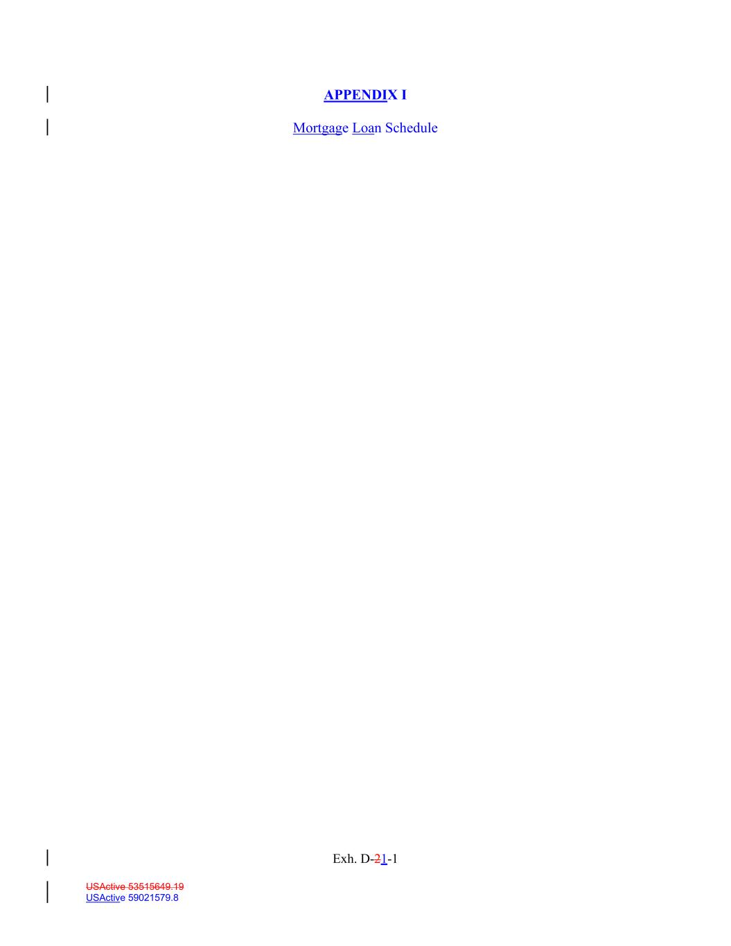 USActive 53515649.19 USActive 59021579.8 APPENDIX I Mortgage Loan Schedule Exh. D-21-1