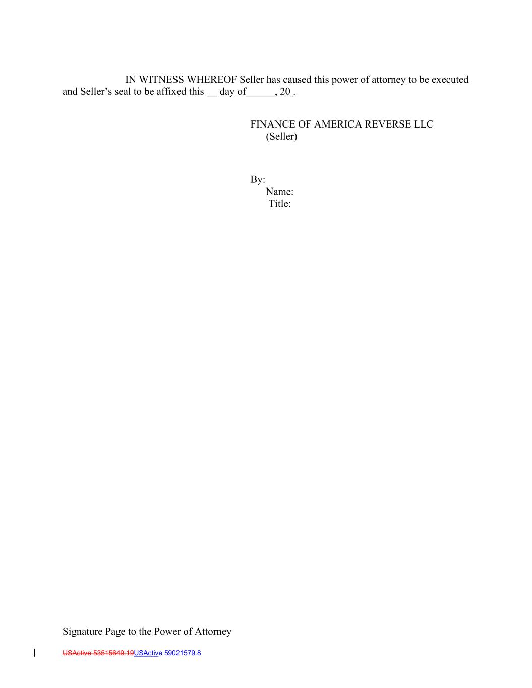 Signature Page to the Power of Attorney USActive 53515649.19USActive 59021579.8 IN WITNESS WHEREOF Seller has caused this power of attorney to be executed and Seller’s seal to be affixed this day of , 20 . FINANCE OF AMERICA REVERSE LLC (Seller) By: Name: Title:
