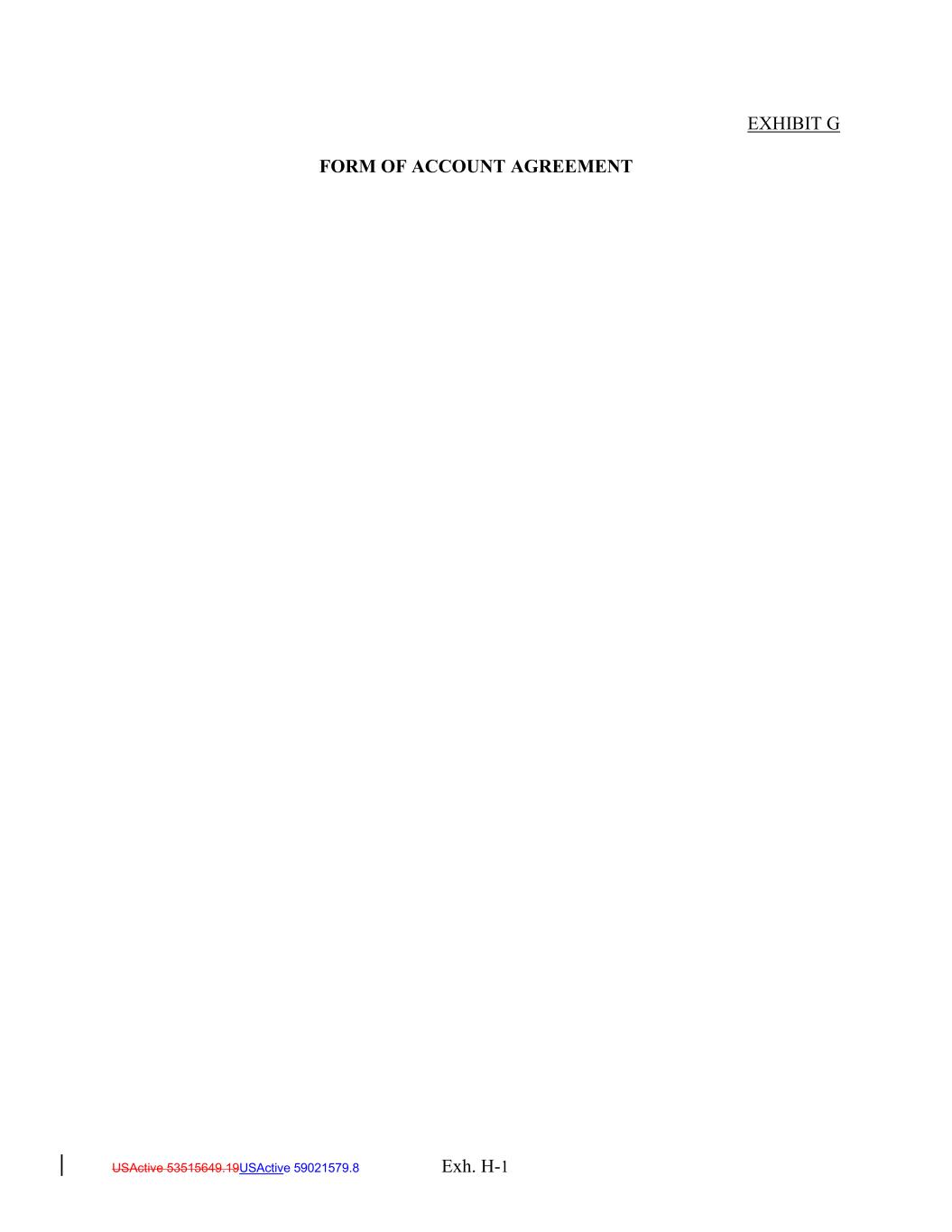 EXHIBIT G FORM OF ACCOUNT AGREEMENT USActive 53515649.19USActive 59021579.8 Exh. H-1