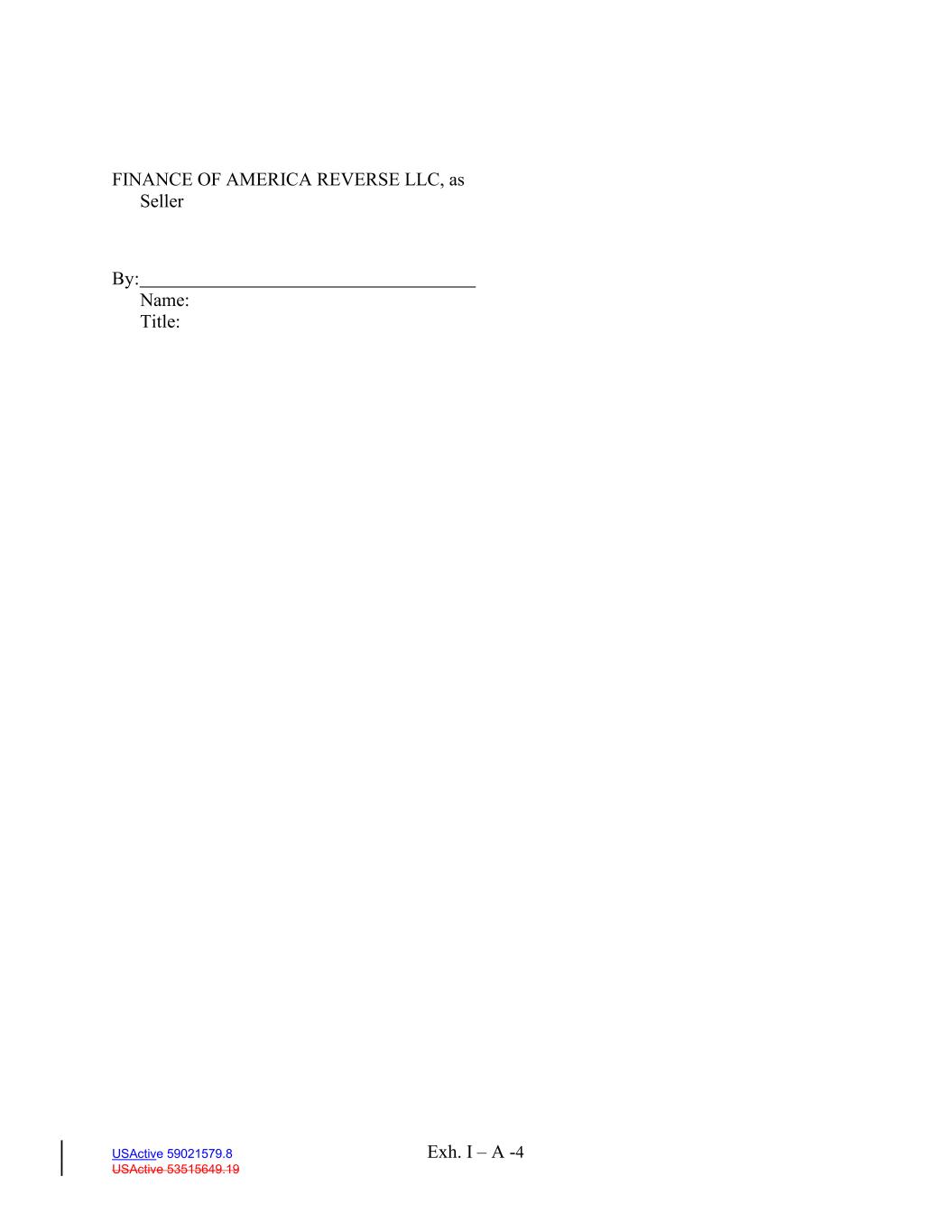 Exh. I – A -4 USActive 59021579.8 USActive 53515649.19 FINANCE OF AMERICA REVERSE LLC, as Seller By: Name: Title:
