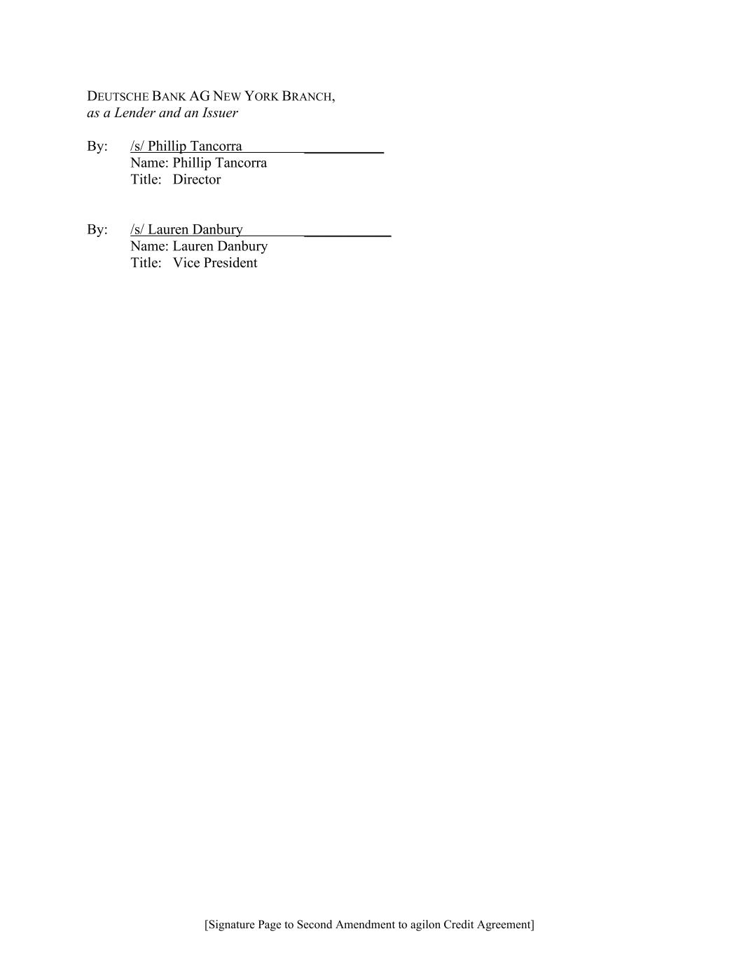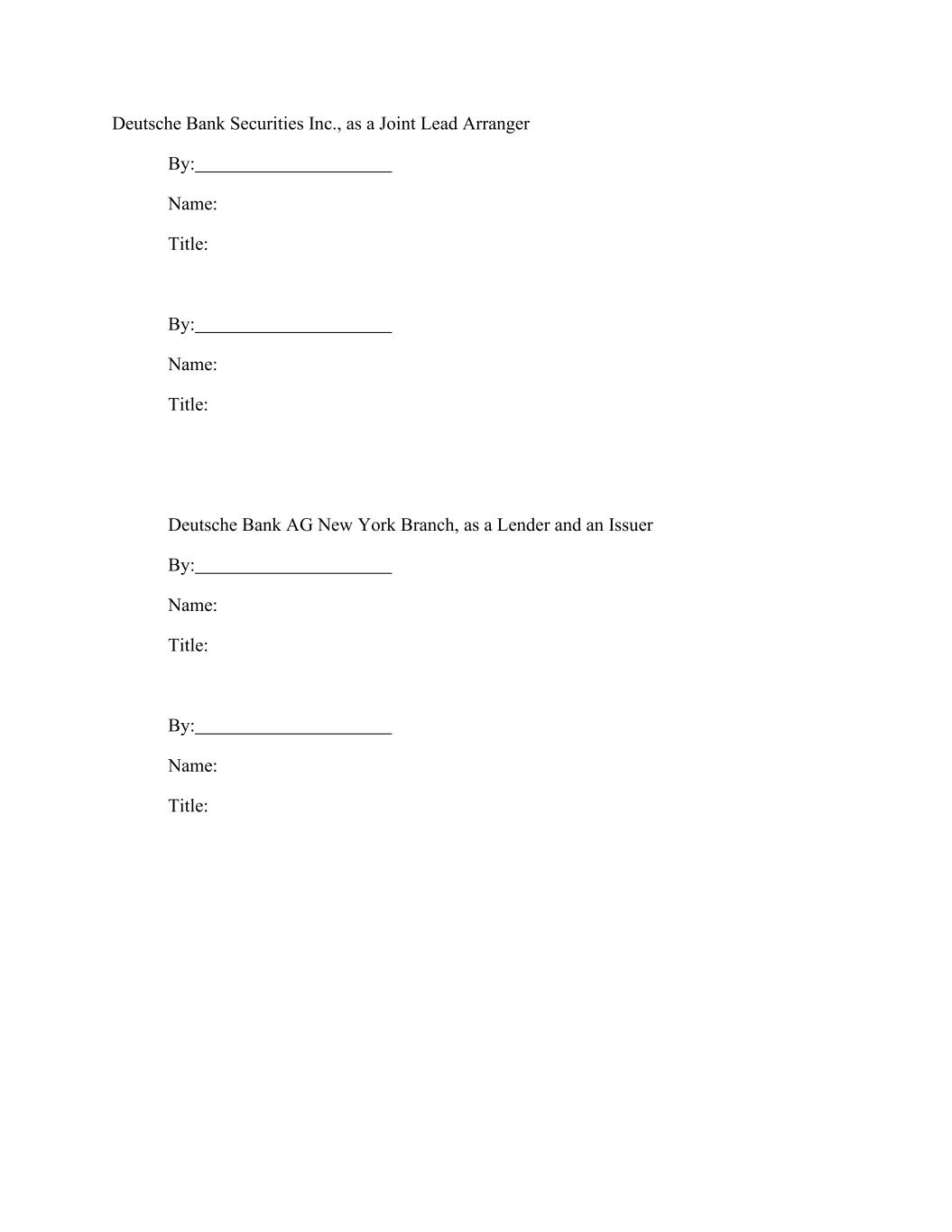 Deutsche Bank Securities Inc., as a Joint Lead Arranger By: Name: Title: By: Name: Title: Deutsche Bank AG New York Branch, as a Lender and an Issuer By: Name: Title: By: Name: Title: